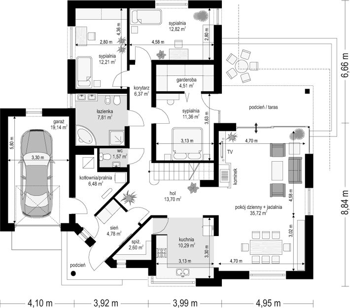 PROJEKT Z BUDOWĄ Istnieje możliwość zaadaptowania tego projektu do technologii prefabrykowanej/modułowej i budowy nawet w 6 miesięcy ze stałym kosztem budowy
