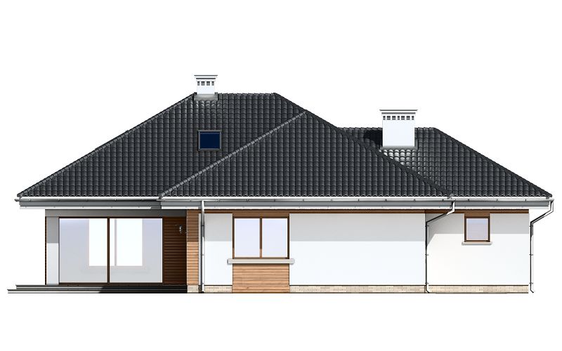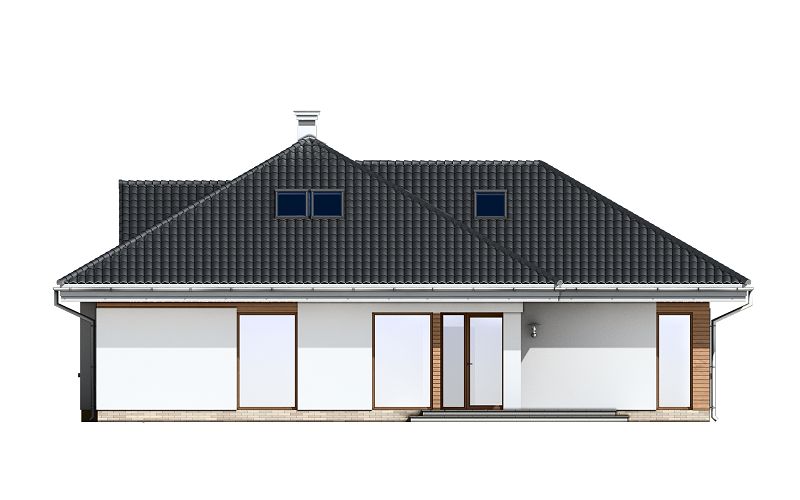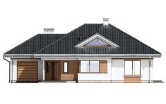 Graficzne opracowanie rzutów poglądowych widocznych na karcie projektu zostało wykonane przez Extradom.pl. Prezentowane przez Extradom.pl wizualizacje wykonane zostały przez autora projektu i należy poczytywać je jedynie za przykład i propozycję wykończenia, wizję architektoniczną autora projektu. Ostateczne wykończenie budynku może nastąpić na wiele sposobów. Szczegółowe rozwiązania zastosowane w oferowanej dokumentacji - w tym również ilość, lokalizacje i wygląd okien, drzwi, kominów - mogą w niewielkim stopniu różnić się od prezentowanej wizualizacji budynku.