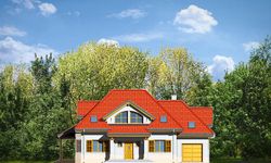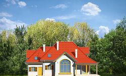 Graficzne opracowanie rzutów poglądowych widocznych na karcie projektu zostało wykonane przez Extradom.pl. Prezentowane przez Extradom.pl wizualizacje wykonane zostały przez autora projektu i należy poczytywać je jedynie za przykład i propozycję wykończenia, wizję architektoniczną autora projektu. Ostateczne wykończenie budynku może nastąpić na wiele sposobów. Szczegółowe rozwiązania zastosowane w oferowanej dokumentacji - w tym również ilość, lokalizacje i wygląd okien, drzwi, kominów - mogą w niewielkim stopniu różnić się od prezentowanej wizualizacji budynku.