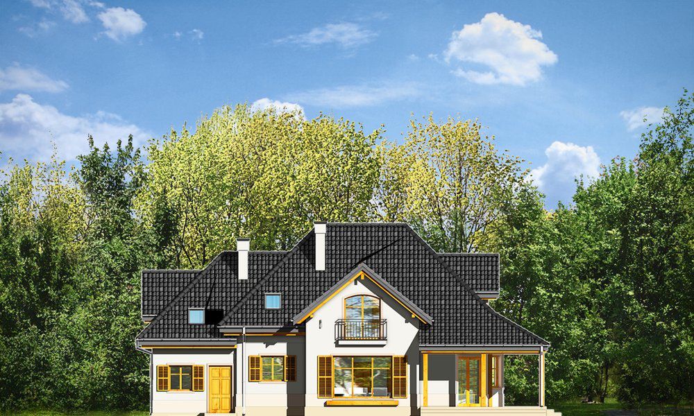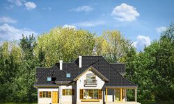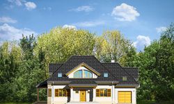 Graficzne opracowanie rzutów poglądowych widocznych na karcie projektu zostało wykonane przez Extradom.pl. Prezentowane przez Extradom.pl wizualizacje wykonane zostały przez autora projektu i należy poczytywać je jedynie za przykład i propozycję wykończenia, wizję architektoniczną autora projektu. Ostateczne wykończenie budynku może nastąpić na wiele sposobów. Szczegółowe rozwiązania zastosowane w oferowanej dokumentacji - w tym również ilość, lokalizacje i wygląd okien, drzwi, kominów - mogą w niewielkim stopniu różnić się od prezentowanej wizualizacji budynku.
