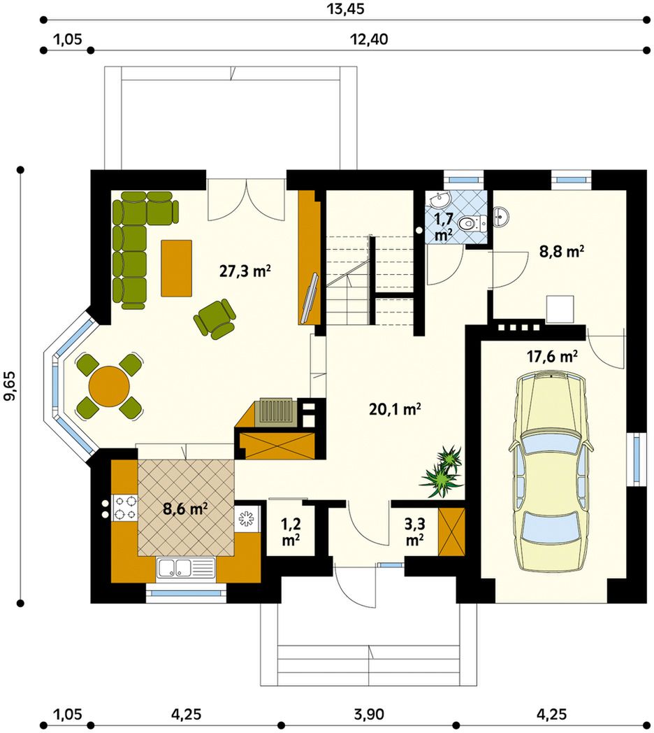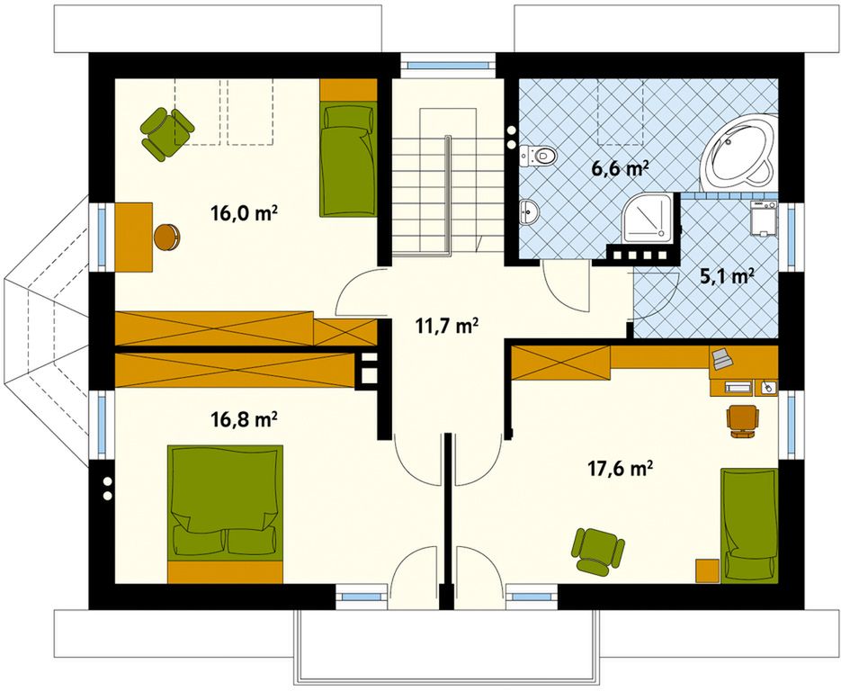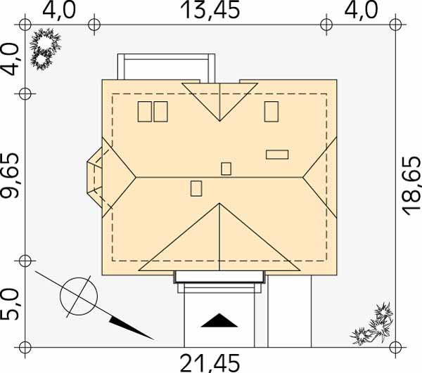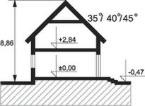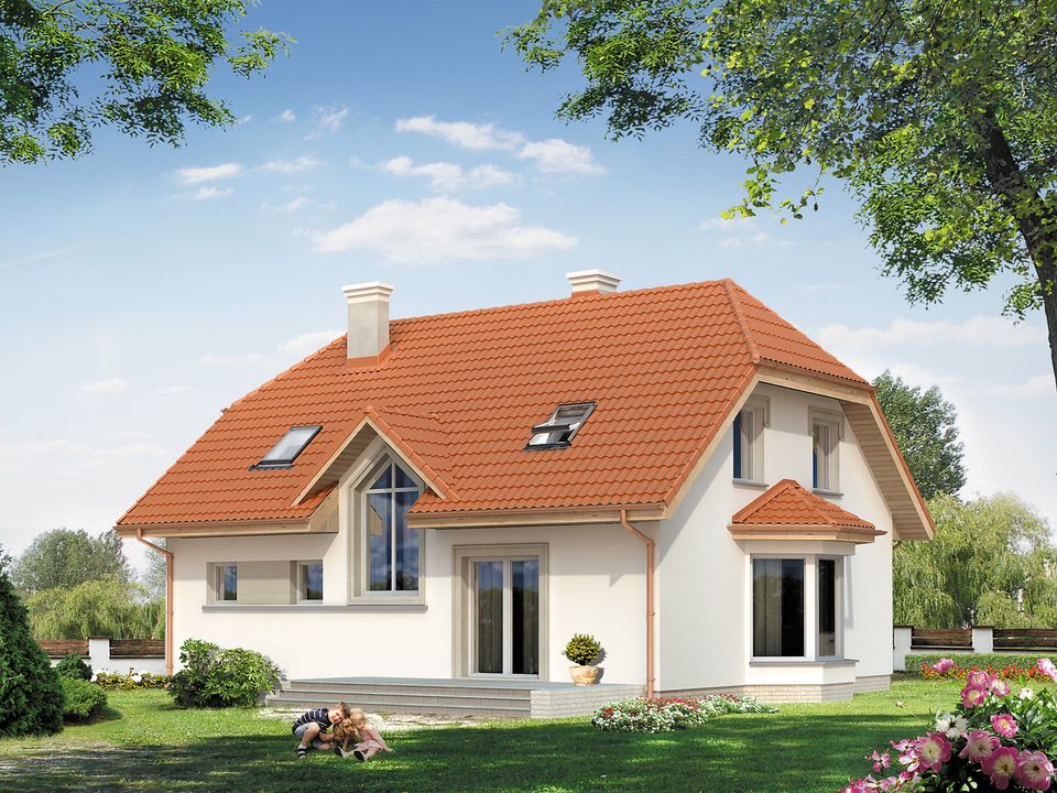 Graficzne opracowanie rzutów poglądowych widocznych na karcie projektu zostało wykonane przez Extradom.pl. Prezentowane przez Extradom.pl wizualizacje wykonane zostały przez autora projektu i należy poczytywać je jedynie za przykład i propozycję wykończenia, wizję architektoniczną autora projektu. Ostateczne wykończenie budynku może nastąpić na wiele sposobów. Szczegółowe rozwiązania zastosowane w oferowanej dokumentacji - w tym również ilość, lokalizacje i wygląd okien, drzwi, kominów - mogą w niewielkim stopniu różnić się od prezentowanej wizualizacji budynku.