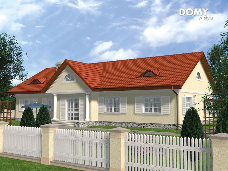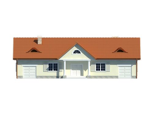 Graficzne opracowanie rzutów poglądowych widocznych na karcie projektu zostało wykonane przez Extradom.pl. Prezentowane przez Extradom.pl wizualizacje wykonane zostały przez autora projektu i należy poczytywać je jedynie za przykład i propozycję wykończenia, wizję architektoniczną autora projektu. Ostateczne wykończenie budynku może nastąpić na wiele sposobów. Szczegółowe rozwiązania zastosowane w oferowanej dokumentacji - w tym również ilość, lokalizacje i wygląd okien, drzwi, kominów - mogą w niewielkim stopniu różnić się od prezentowanej wizualizacji budynku.