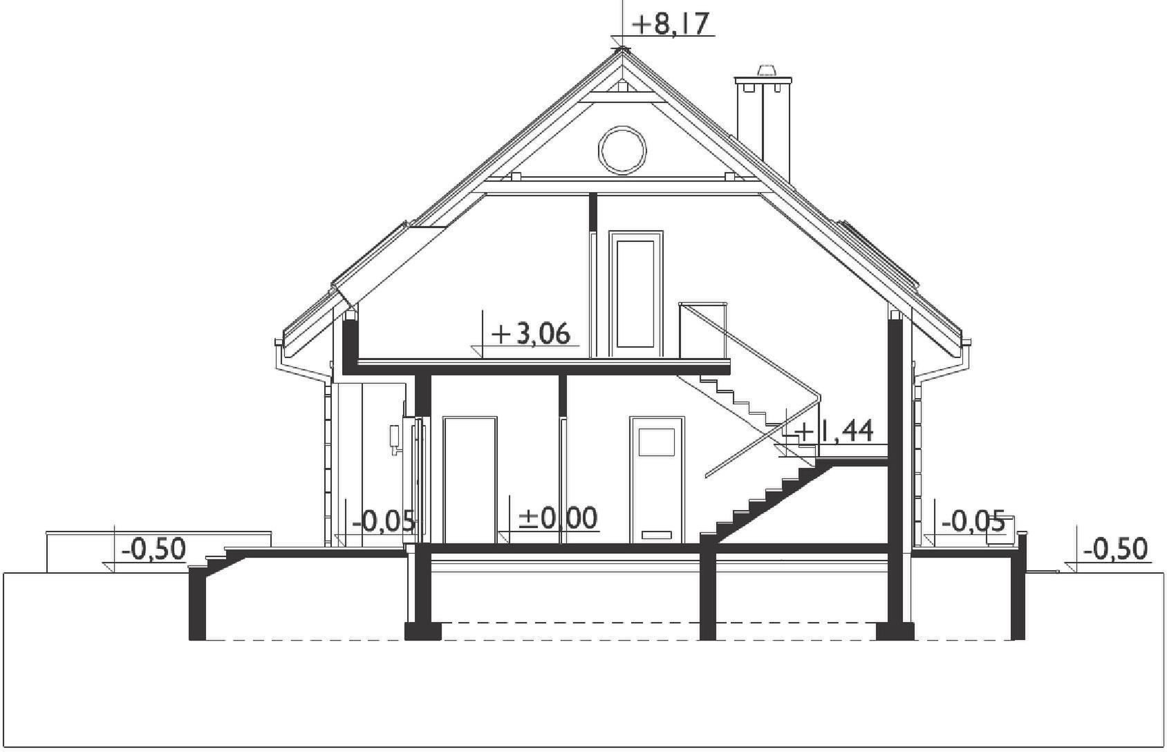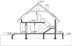 Technologia i konstrukcja: murowana – ceramika. Ściany zewnętrzne: pustaki TERMOton P+W 25 firmy ZCB OWCZARY + docieplenie płyty styropianowe GOLD fasada firmy Termoorganika gr. 15 cm. Ściany wewnętrzne: pustaki TERMOton P+W 25 firmy ZCB OWCZARY, działowe: pustaki TERMOton P+W 11,5. Strop: żelbetowy. Konstrukcja dachu: drewniana, jętkowa. Rodzaj schodów: żelbetowe. Typ ogrzewania: kocioł na gaz. Aneks na paliwo stałe: na zamówienie. Pokrycie dachu: panel dachowy na rąbek ELEGANT firmy BALEX METAL. Elewacja: tynki firmy SICHER BAUTECHNIK, częściowo okładzina z płytek elewacyjnych.