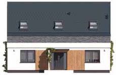 Graficzne opracowanie rzutów poglądowych widocznych na karcie projektu zostało wykonane przez Extradom.pl. Prezentowane przez Extradom.pl wizualizacje wykonane zostały przez autora projektu i należy poczytywać je jedynie za przykład i propozycję wykończenia, wizję architektoniczną autora projektu. Ostateczne wykończenie budynku może nastąpić na wiele sposobów. Szczegółowe rozwiązania zastosowane w oferowanej dokumentacji - w tym również ilość, lokalizacje i wygląd okien, drzwi, kominów - mogą w niewielkim stopniu różnić się od prezentowanej wizualizacji budynku.
