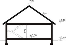 Fundamenty: bezpośrednie, na ławach i stopach fundamentowych. Ściany zewnętrzne: bloczki z bet. komórkowego - 36 cm + styropian TERMO ORGANIKA typ Fasada 6 cm. Ściany wewnętrzne: bloczki z bet. komórkowego - 24 cm (działowe - 12 cm). Strop: belki drewniane. Elewacje: tynk - System Platinum firmy TERMO ORGANIKA. Pokrycie dachu: dachówka cementowa. Konstrukcja dachu: drewniana o układzie konstrukcyjnym mieszanym. Schody wewnętrzne: wyłaz na poddasze. Ogrzewanie: kocioł gazowy jednofunkcyjny kondensacyjny, dodatkowe źródło ciepła - kominek z płaszczem wodnym Projekt zgodny z wymaganiami WT2017..