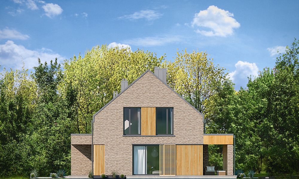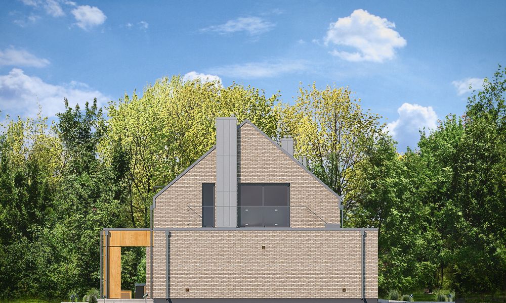 Graficzne opracowanie rzutów poglądowych widocznych na karcie projektu zostało wykonane przez Extradom.pl. Prezentowane przez Extradom.pl wizualizacje wykonane zostały przez autora projektu i należy poczytywać je jedynie za przykład i propozycję wykończenia, wizję architektoniczną autora projektu. Ostateczne wykończenie budynku może nastąpić na wiele sposobów. Szczegółowe rozwiązania zastosowane w oferowanej dokumentacji - w tym również ilość, lokalizacje i wygląd okien, drzwi, kominów - mogą w niewielkim stopniu różnić się od prezentowanej wizualizacji budynku.