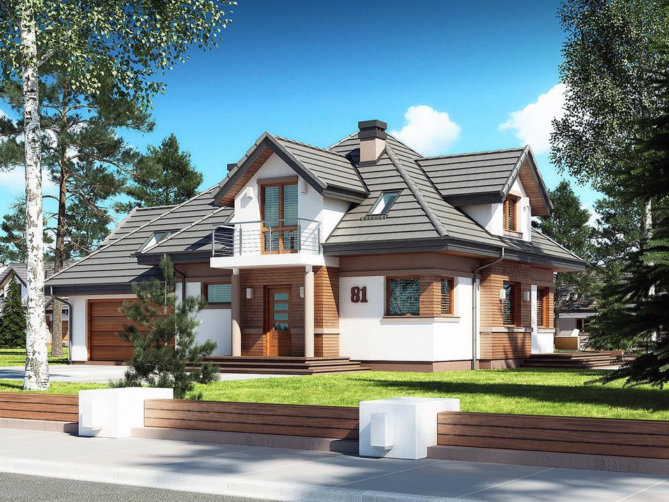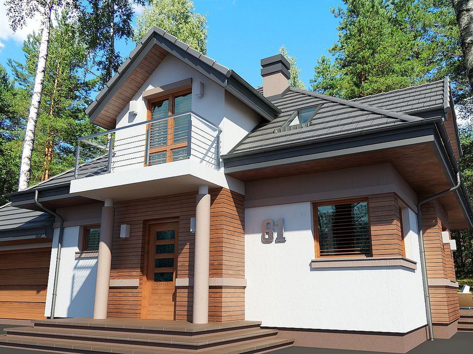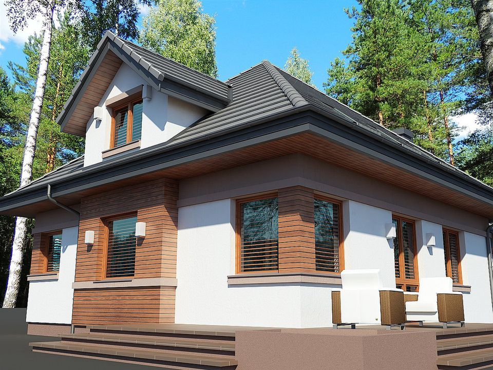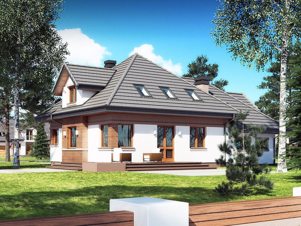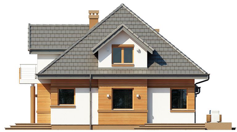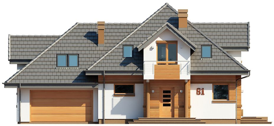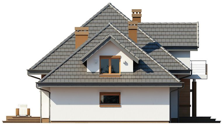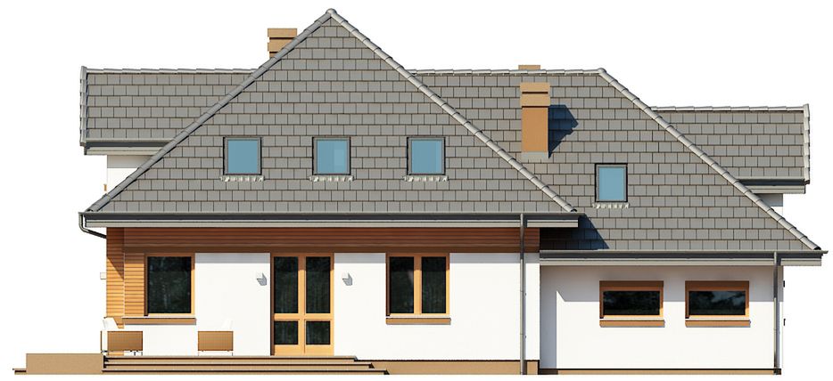 Graficzne opracowanie rzutów poglądowych widocznych na karcie projektu zostało wykonane przez Extradom.pl. Prezentowane przez Extradom.pl wizualizacje wykonane zostały przez autora projektu i należy poczytywać je jedynie za przykład i propozycję wykończenia, wizję architektoniczną autora projektu. Ostateczne wykończenie budynku może nastąpić na wiele sposobów. Szczegółowe rozwiązania zastosowane w oferowanej dokumentacji - w tym również ilość, lokalizacje i wygląd okien, drzwi, kominów - mogą w niewielkim stopniu różnić się od prezentowanej wizualizacji budynku.