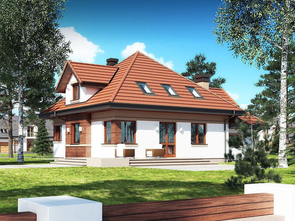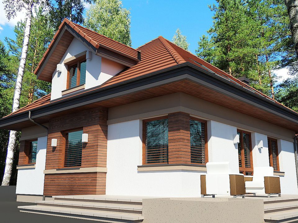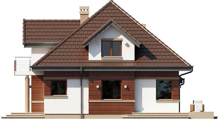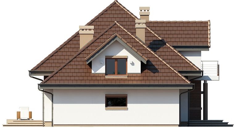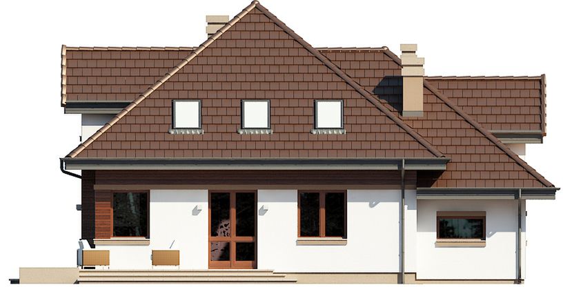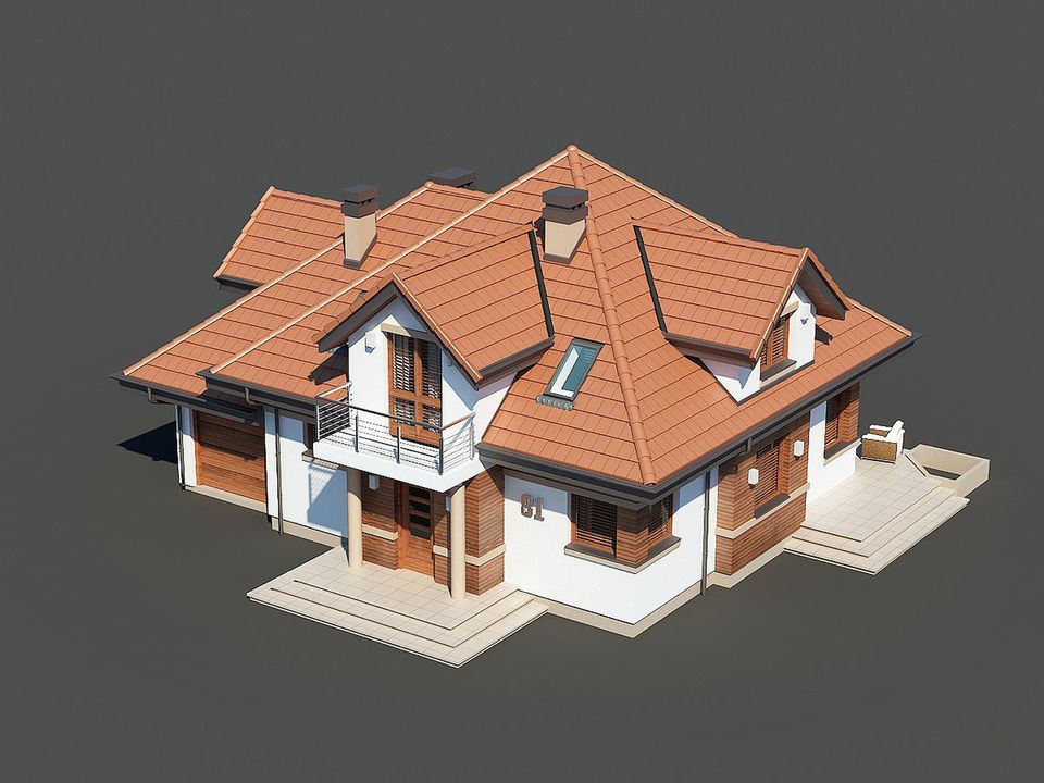 Graficzne opracowanie rzutów poglądowych widocznych na karcie projektu zostało wykonane przez Extradom.pl. Prezentowane przez Extradom.pl wizualizacje wykonane zostały przez autora projektu i należy poczytywać je jedynie za przykład i propozycję wykończenia, wizję architektoniczną autora projektu. Ostateczne wykończenie budynku może nastąpić na wiele sposobów. Szczegółowe rozwiązania zastosowane w oferowanej dokumentacji - w tym również ilość, lokalizacje i wygląd okien, drzwi, kominów - mogą w niewielkim stopniu różnić się od prezentowanej wizualizacji budynku.