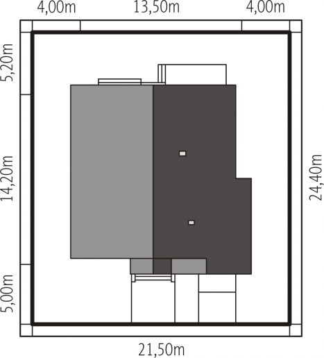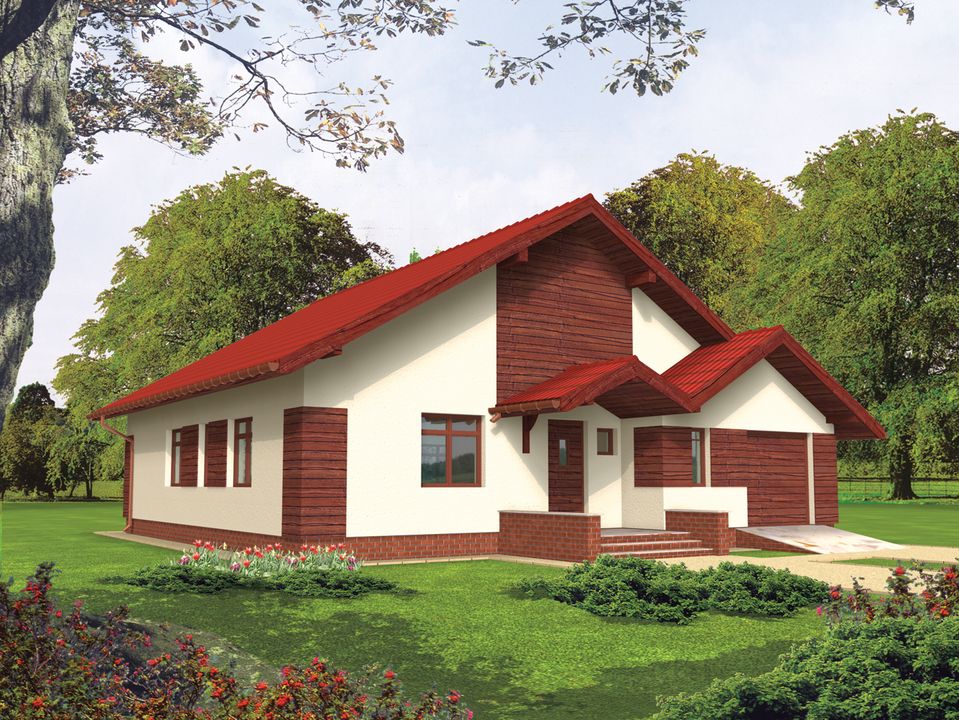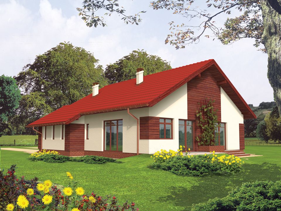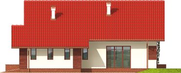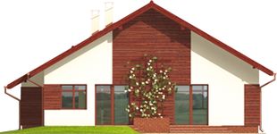 Graficzne opracowanie rzutów poglądowych widocznych na karcie projektu zostało wykonane przez Extradom.pl. Prezentowane przez Extradom.pl wizualizacje wykonane zostały przez autora projektu i należy poczytywać je jedynie za przykład i propozycję wykończenia, wizję architektoniczną autora projektu. Ostateczne wykończenie budynku może nastąpić na wiele sposobów. Szczegółowe rozwiązania zastosowane w oferowanej dokumentacji - w tym również ilość, lokalizacje i wygląd okien, drzwi, kominów - mogą w niewielkim stopniu różnić się od prezentowanej wizualizacji budynku.