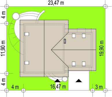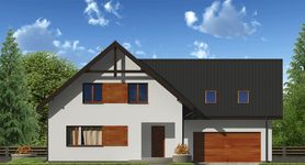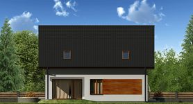 Graficzne opracowanie rzutów poglądowych widocznych na karcie projektu zostało wykonane przez Extradom.pl. Prezentowane przez Extradom.pl wizualizacje wykonane zostały przez autora projektu i należy poczytywać je jedynie za przykład i propozycję wykończenia, wizję architektoniczną autora projektu. Ostateczne wykończenie budynku może nastąpić na wiele sposobów. Szczegółowe rozwiązania zastosowane w oferowanej dokumentacji - w tym również ilość, lokalizacje i wygląd okien, drzwi, kominów - mogą w niewielkim stopniu różnić się od prezentowanej wizualizacji budynku.