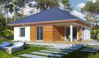 Graficzne opracowanie rzutów poglądowych widocznych na karcie projektu zostało wykonane przez Extradom.pl. Prezentowane przez Extradom.pl wizualizacje wykonane zostały przez autora projektu i należy poczytywać je jedynie za przykład i propozycję wykończenia, wizję architektoniczną autora projektu. Ostateczne wykończenie budynku może nastąpić na wiele sposobów. Szczegółowe rozwiązania zastosowane w oferowanej dokumentacji - w tym również ilość, lokalizacje i wygląd okien, drzwi, kominów - mogą w niewielkim stopniu różnić się od prezentowanej wizualizacji budynku.