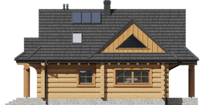 Wysokość ścianki kolankowej: 1.01 m. Strop: żelbet + drewniany. Pokrycie dachu: dachówka gontopodobna Gerard Corona. Ściany zewnętrzne: płazy drewniane + wełna mineralna + deska. Ściany wewnętrzne: płazy drewniane. Typ ogrzewania: kocioł gazowy lub kocioł na paliwo stałe. Instalacje dodatkowe: instalacja solarna. Inne: okna połaciowe Velux.