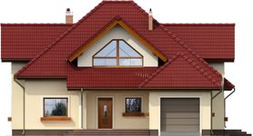 Graficzne opracowanie rzutów poglądowych widocznych na karcie projektu zostało wykonane przez Extradom.pl. Prezentowane przez Extradom.pl wizualizacje wykonane zostały przez autora projektu i należy poczytywać je jedynie za przykład i propozycję wykończenia, wizję architektoniczną autora projektu. Ostateczne wykończenie budynku może nastąpić na wiele sposobów. Szczegółowe rozwiązania zastosowane w oferowanej dokumentacji - w tym również ilość, lokalizacje i wygląd okien, drzwi, kominów - mogą w niewielkim stopniu różnić się od prezentowanej wizualizacji budynku.