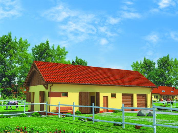 Graficzne opracowanie rzutów poglądowych widocznych na karcie projektu zostało wykonane przez Extradom.pl. Prezentowane przez Extradom.pl wizualizacje wykonane zostały przez autora projektu i należy poczytywać je jedynie za przykład i propozycję wykończenia, wizję architektoniczną autora projektu. Ostateczne wykończenie budynku może nastąpić na wiele sposobów. Szczegółowe rozwiązania zastosowane w oferowanej dokumentacji - w tym również ilość, lokalizacje i wygląd okien, drzwi, kominów - mogą w niewielkim stopniu różnić się od prezentowanej wizualizacji budynku.