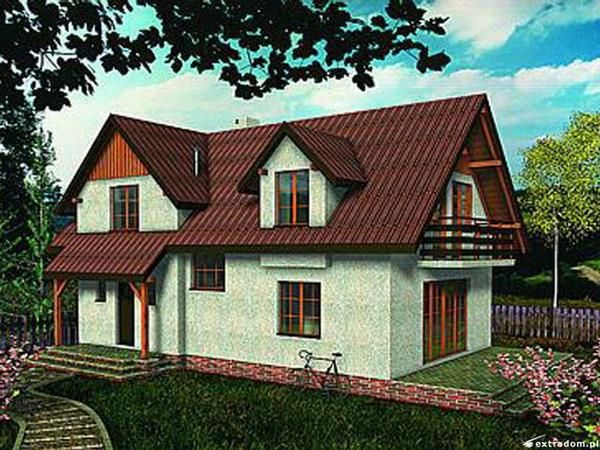 Graficzne opracowanie rzutów poglądowych widocznych na karcie projektu zostało wykonane przez Extradom.pl. Prezentowane przez Extradom.pl wizualizacje wykonane zostały przez autora projektu i należy poczytywać je jedynie za przykład i propozycję wykończenia, wizję architektoniczną autora projektu. Ostateczne wykończenie budynku może nastąpić na wiele sposobów. Szczegółowe rozwiązania zastosowane w oferowanej dokumentacji - w tym również ilość, lokalizacje i wygląd okien, drzwi, kominów - mogą w niewielkim stopniu różnić się od prezentowanej wizualizacji budynku.