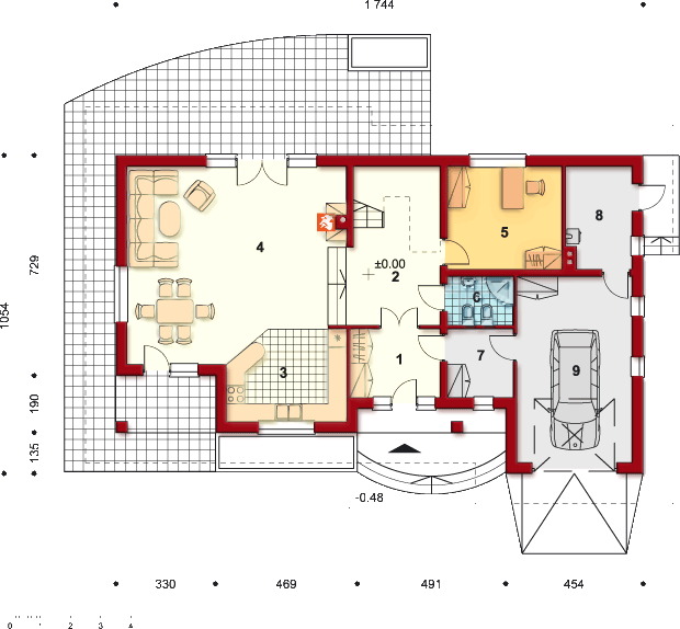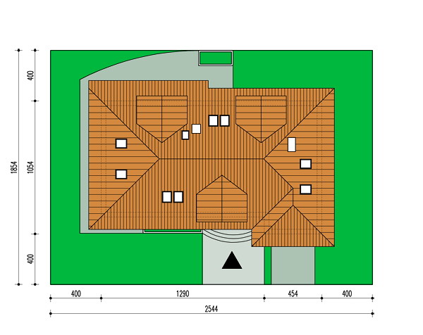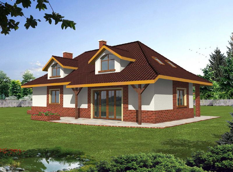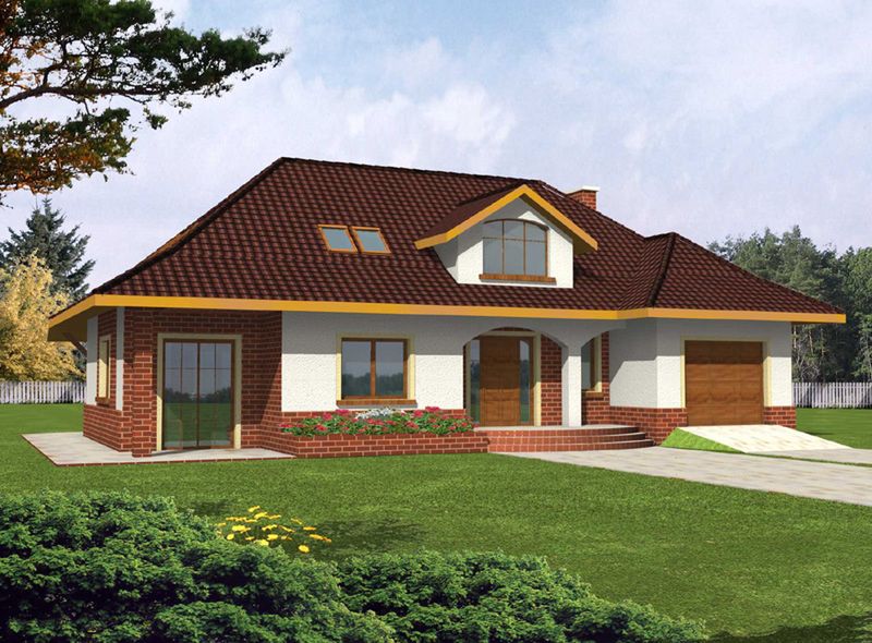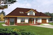 Graficzne opracowanie rzutów poglądowych widocznych na karcie projektu zostało wykonane przez Extradom.pl. Prezentowane przez Extradom.pl wizualizacje wykonane zostały przez autora projektu i należy poczytywać je jedynie za przykład i propozycję wykończenia, wizję architektoniczną autora projektu. Ostateczne wykończenie budynku może nastąpić na wiele sposobów. Szczegółowe rozwiązania zastosowane w oferowanej dokumentacji - w tym również ilość, lokalizacje i wygląd okien, drzwi, kominów - mogą w niewielkim stopniu różnić się od prezentowanej wizualizacji budynku.