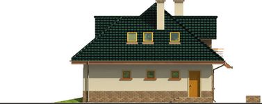 Graficzne opracowanie rzutów poglądowych widocznych na karcie projektu zostało wykonane przez Extradom.pl. Prezentowane przez Extradom.pl wizualizacje wykonane zostały przez autora projektu i należy poczytywać je jedynie za przykład i propozycję wykończenia, wizję architektoniczną autora projektu. Ostateczne wykończenie budynku może nastąpić na wiele sposobów. Szczegółowe rozwiązania zastosowane w oferowanej dokumentacji - w tym również ilość, lokalizacje i wygląd okien, drzwi, kominów - mogą w niewielkim stopniu różnić się od prezentowanej wizualizacji budynku.