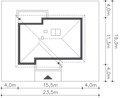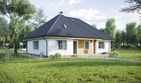 Graficzne opracowanie rzutów poglądowych widocznych na karcie projektu zostało wykonane przez Extradom.pl. Prezentowane przez Extradom.pl wizualizacje wykonane zostały przez autora projektu i należy poczytywać je jedynie za przykład i propozycję wykończenia, wizję architektoniczną autora projektu. Ostateczne wykończenie budynku może nastąpić na wiele sposobów. Szczegółowe rozwiązania zastosowane w oferowanej dokumentacji - w tym również ilość, lokalizacje i wygląd okien, drzwi, kominów - mogą w niewielkim stopniu różnić się od prezentowanej wizualizacji budynku.