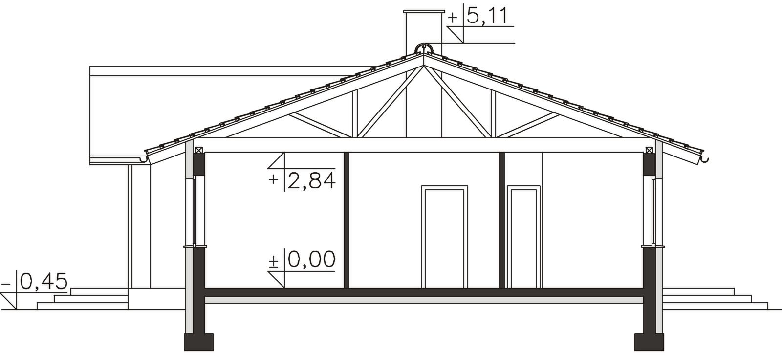 Fundamenty - rozwiązanie o podwyższonej izolacji termicznej. Ściany zewnętrzne - Pustak ceramiczny 25 cm + styropian 15 cm. Strop - drewniany. Dach - wiązary prefabrykowane. Ogrzewanie - c.o. grzejnikowe + c.w.u. - kocioł gazowy. Wentylacja - grawitacyjna.