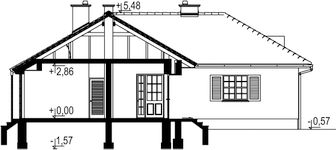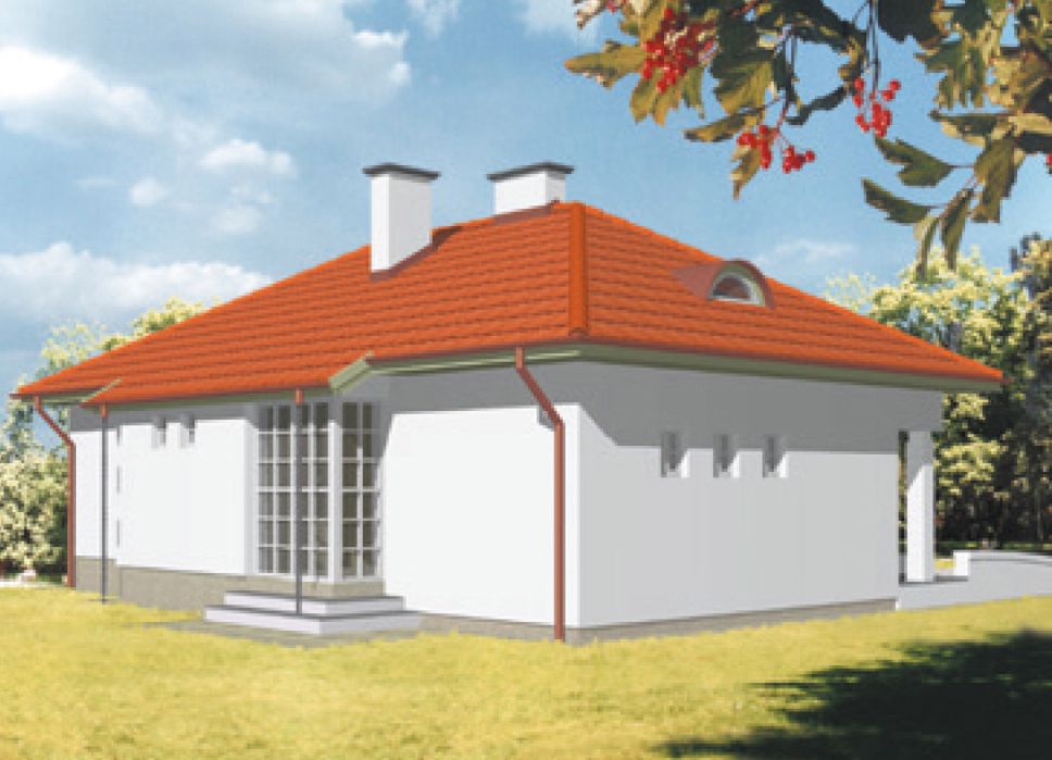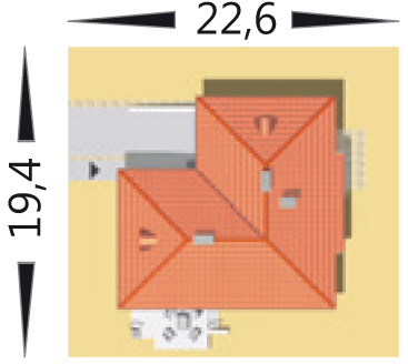 Graficzne opracowanie rzutów poglądowych widocznych na karcie projektu zostało wykonane przez Extradom.pl. Prezentowane przez Extradom.pl wizualizacje wykonane zostały przez autora projektu i należy poczytywać je jedynie za przykład i propozycję wykończenia, wizję architektoniczną autora projektu. Ostateczne wykończenie budynku może nastąpić na wiele sposobów. Szczegółowe rozwiązania zastosowane w oferowanej dokumentacji - w tym również ilość, lokalizacje i wygląd okien, drzwi, kominów - mogą w niewielkim stopniu różnić się od prezentowanej wizualizacji budynku.