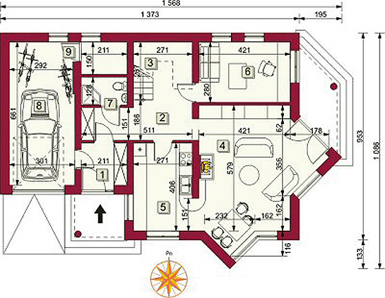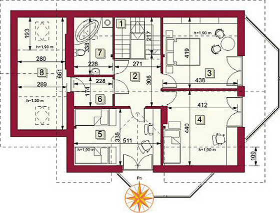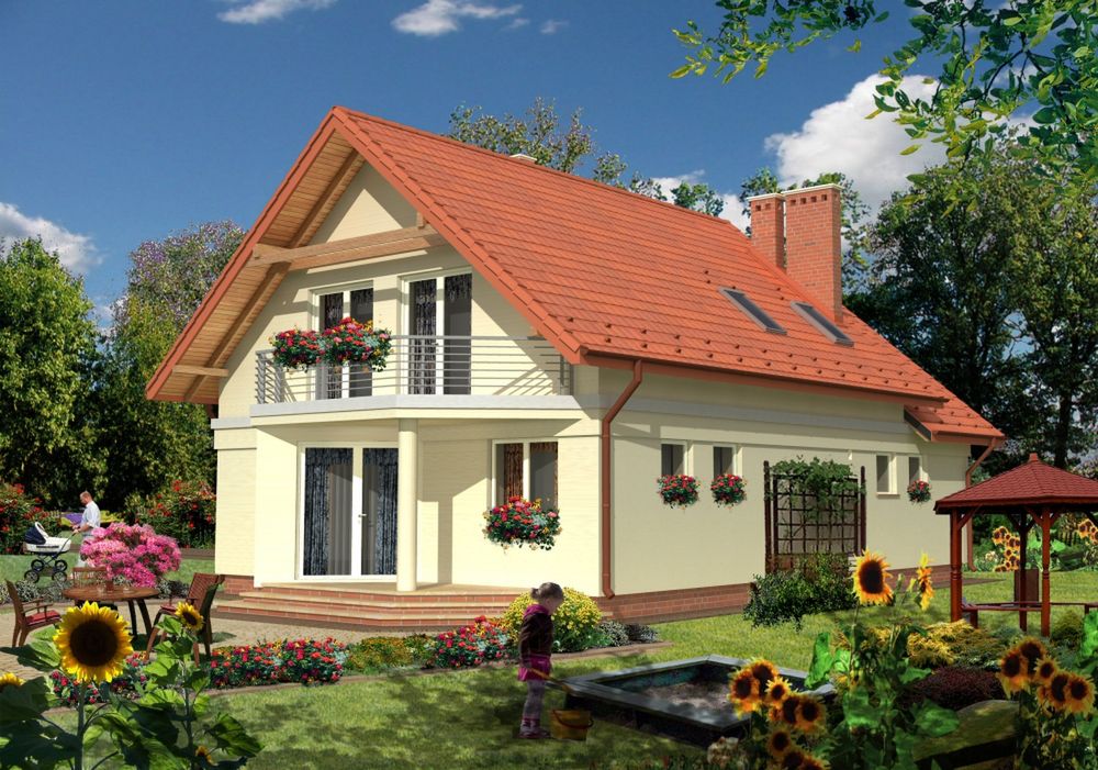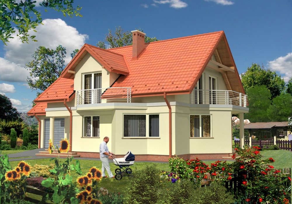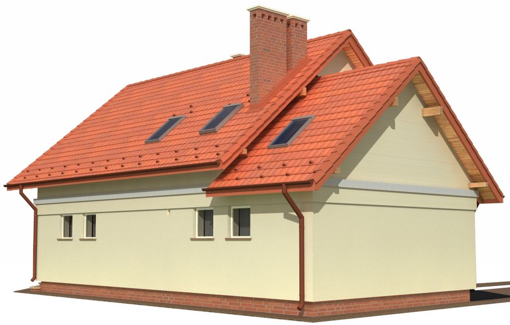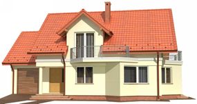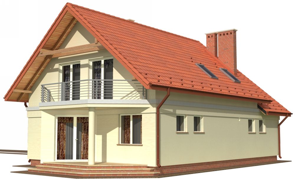 Graficzne opracowanie rzutów poglądowych widocznych na karcie projektu zostało wykonane przez Extradom.pl. Prezentowane przez Extradom.pl wizualizacje wykonane zostały przez autora projektu i należy poczytywać je jedynie za przykład i propozycję wykończenia, wizję architektoniczną autora projektu. Ostateczne wykończenie budynku może nastąpić na wiele sposobów. Szczegółowe rozwiązania zastosowane w oferowanej dokumentacji - w tym również ilość, lokalizacje i wygląd okien, drzwi, kominów - mogą w niewielkim stopniu różnić się od prezentowanej wizualizacji budynku.