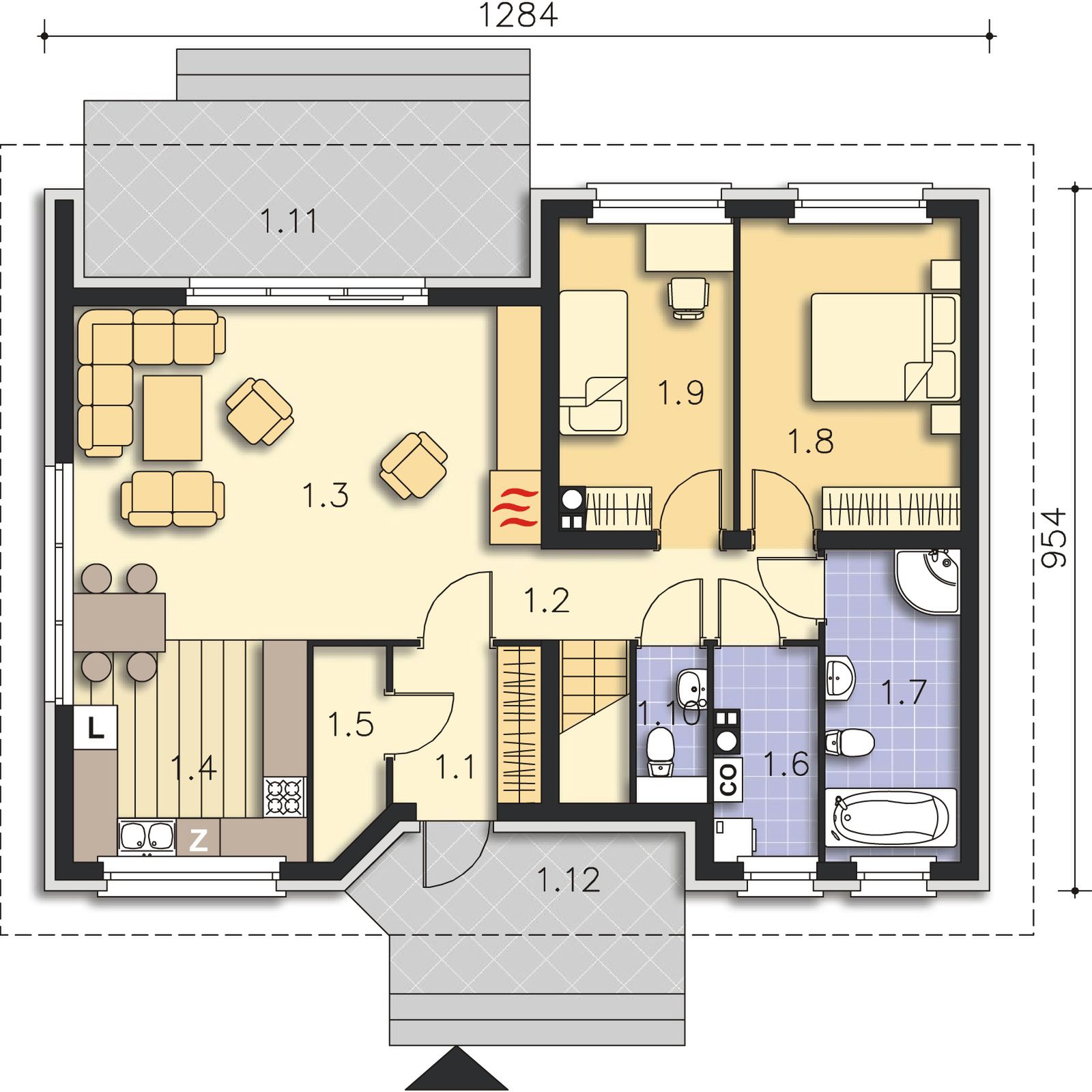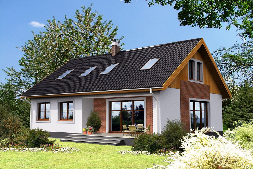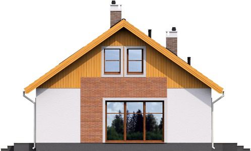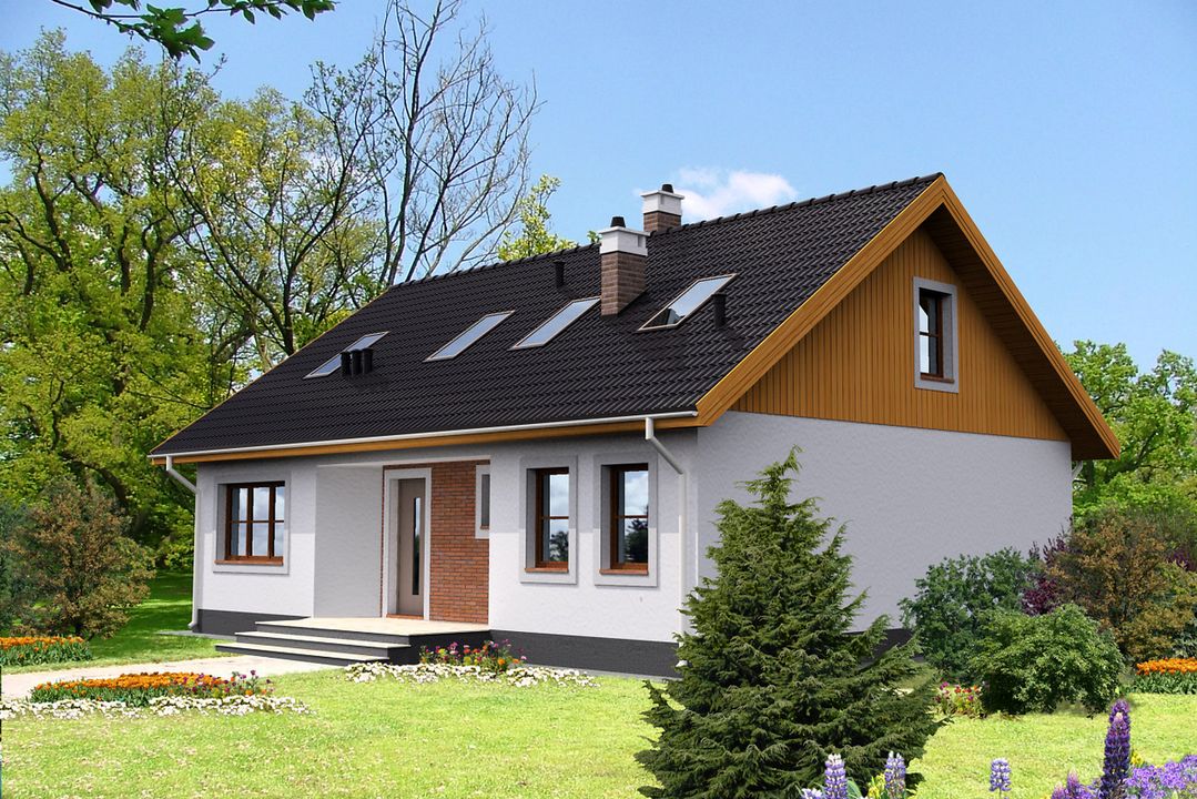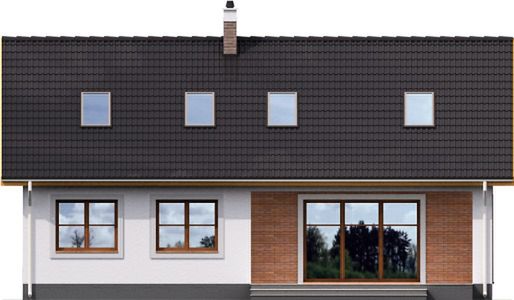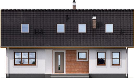 Graficzne opracowanie rzutów poglądowych widocznych na karcie projektu zostało wykonane przez Extradom.pl. Prezentowane przez Extradom.pl wizualizacje wykonane zostały przez autora projektu i należy poczytywać je jedynie za przykład i propozycję wykończenia, wizję architektoniczną autora projektu. Ostateczne wykończenie budynku może nastąpić na wiele sposobów. Szczegółowe rozwiązania zastosowane w oferowanej dokumentacji - w tym również ilość, lokalizacje i wygląd okien, drzwi, kominów - mogą w niewielkim stopniu różnić się od prezentowanej wizualizacji budynku.