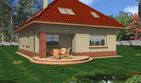 Graficzne opracowanie rzutów poglądowych widocznych na karcie projektu zostało wykonane przez Extradom.pl. Prezentowane przez Extradom.pl wizualizacje wykonane zostały przez autora projektu i należy poczytywać je jedynie za przykład i propozycję wykończenia, wizję architektoniczną autora projektu. Ostateczne wykończenie budynku może nastąpić na wiele sposobów. Szczegółowe rozwiązania zastosowane w oferowanej dokumentacji - w tym również ilość, lokalizacje i wygląd okien, drzwi, kominów - mogą w niewielkim stopniu różnić się od prezentowanej wizualizacji budynku.