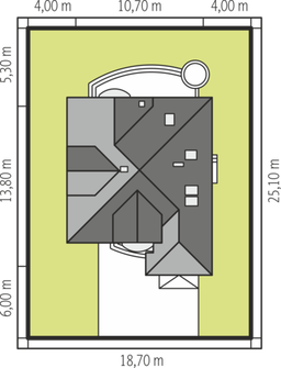 Graficzne opracowanie rzutów poglądowych widocznych na karcie projektu zostało wykonane przez Extradom.pl. Prezentowane przez Extradom.pl wizualizacje wykonane zostały przez autora projektu i należy poczytywać je jedynie za przykład i propozycję wykończenia, wizję architektoniczną autora projektu. Ostateczne wykończenie budynku może nastąpić na wiele sposobów. Szczegółowe rozwiązania zastosowane w oferowanej dokumentacji - w tym również ilość, lokalizacje i wygląd okien, drzwi, kominów - mogą w niewielkim stopniu różnić się od prezentowanej wizualizacji budynku.