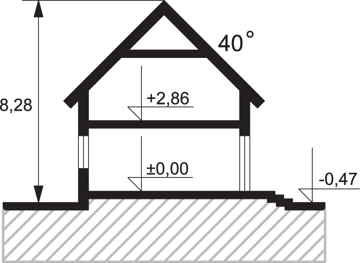 Ściany zewnętrzne: pustak ceramiczny 25 cm + izolacja 18 cm. Strop: płytowy żelbetowy. Więźba dachowa: tradycyjna drewniana.