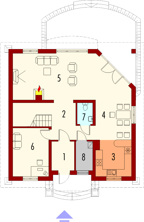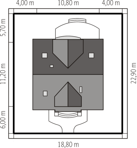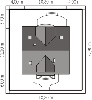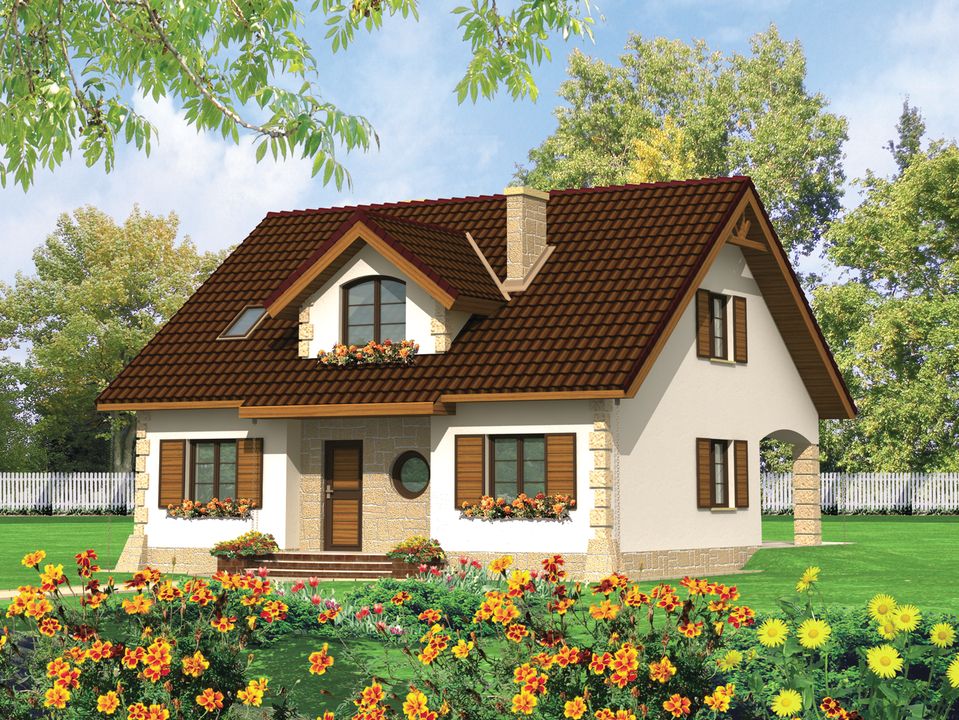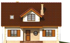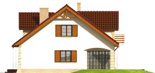 Graficzne opracowanie rzutów poglądowych widocznych na karcie projektu zostało wykonane przez Extradom.pl. Prezentowane przez Extradom.pl wizualizacje wykonane zostały przez autora projektu i należy poczytywać je jedynie za przykład i propozycję wykończenia, wizję architektoniczną autora projektu. Ostateczne wykończenie budynku może nastąpić na wiele sposobów. Szczegółowe rozwiązania zastosowane w oferowanej dokumentacji - w tym również ilość, lokalizacje i wygląd okien, drzwi, kominów - mogą w niewielkim stopniu różnić się od prezentowanej wizualizacji budynku.