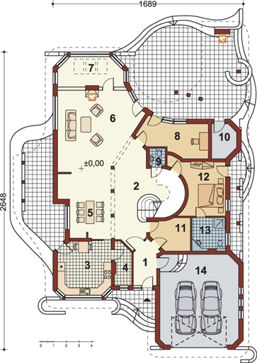 Graficzne opracowanie rzutów poglądowych widocznych na karcie projektu zostało wykonane przez Extradom.pl. Prezentowane przez Extradom.pl wizualizacje wykonane zostały przez autora projektu i należy poczytywać je jedynie za przykład i propozycję wykończenia, wizję architektoniczną autora projektu. Ostateczne wykończenie budynku może nastąpić na wiele sposobów. Szczegółowe rozwiązania zastosowane w oferowanej dokumentacji - w tym również ilość, lokalizacje i wygląd okien, drzwi, kominów - mogą w niewielkim stopniu różnić się od prezentowanej wizualizacji budynku.