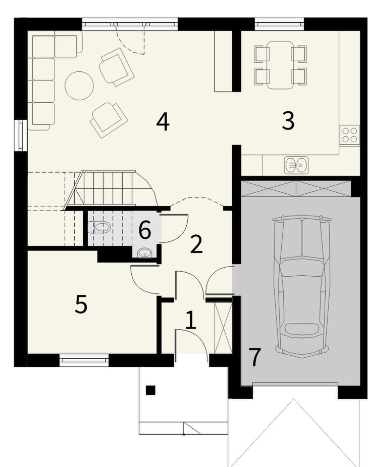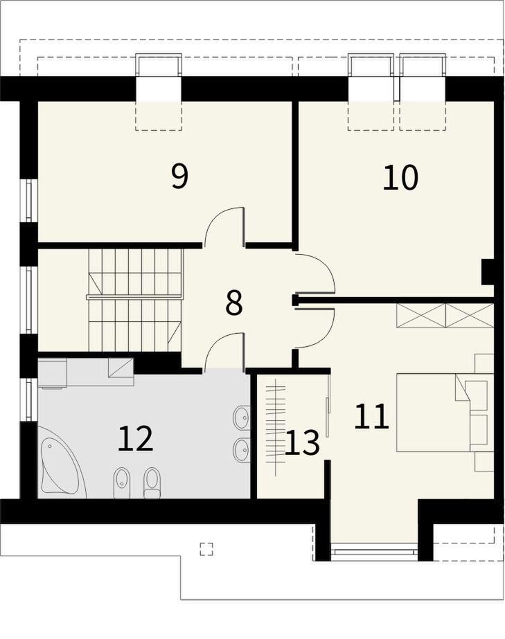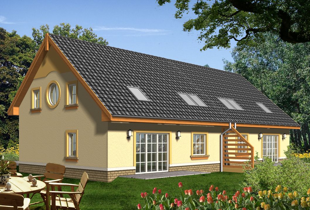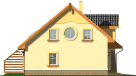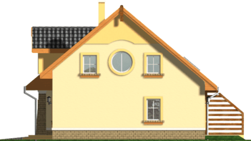 Graficzne opracowanie rzutów poglądowych widocznych na karcie projektu zostało wykonane przez Extradom.pl. Prezentowane przez Extradom.pl wizualizacje wykonane zostały przez autora projektu i należy poczytywać je jedynie za przykład i propozycję wykończenia, wizję architektoniczną autora projektu. Ostateczne wykończenie budynku może nastąpić na wiele sposobów. Szczegółowe rozwiązania zastosowane w oferowanej dokumentacji - w tym również ilość, lokalizacje i wygląd okien, drzwi, kominów - mogą w niewielkim stopniu różnić się od prezentowanej wizualizacji budynku.
