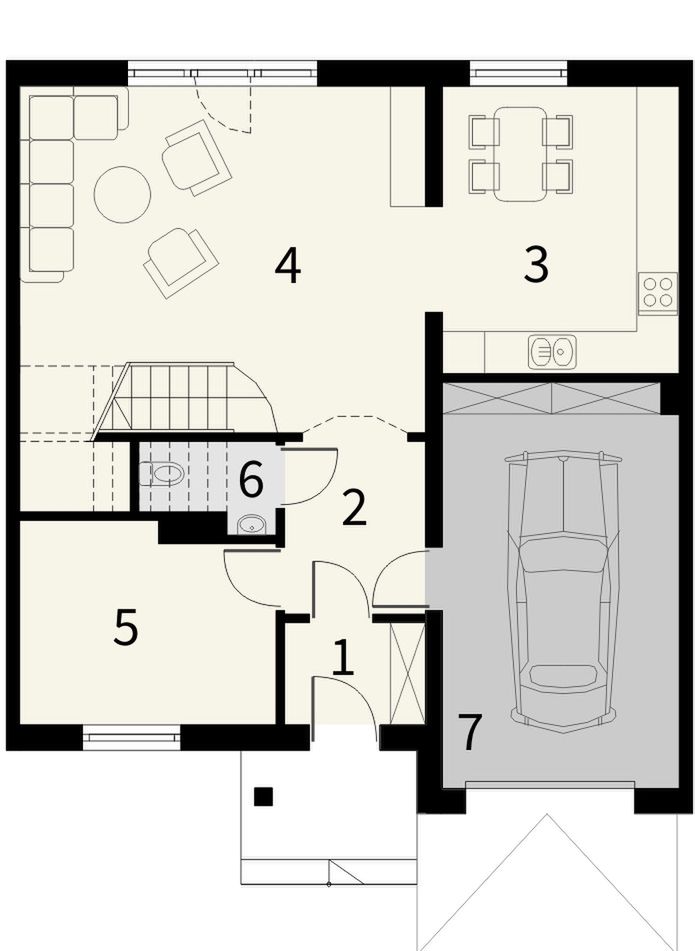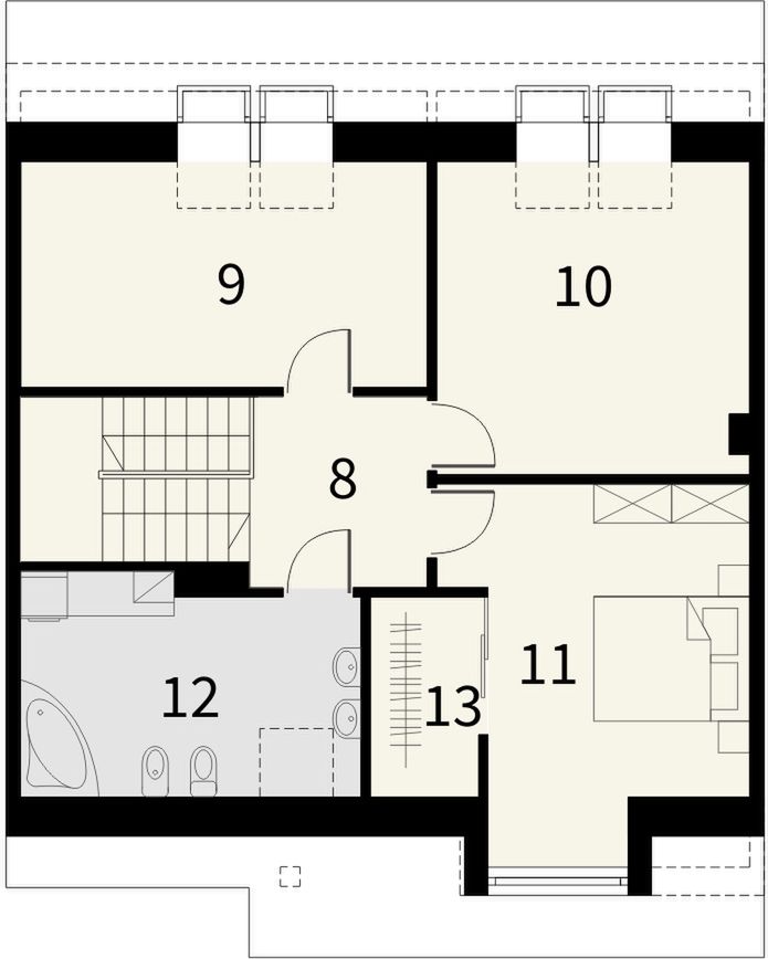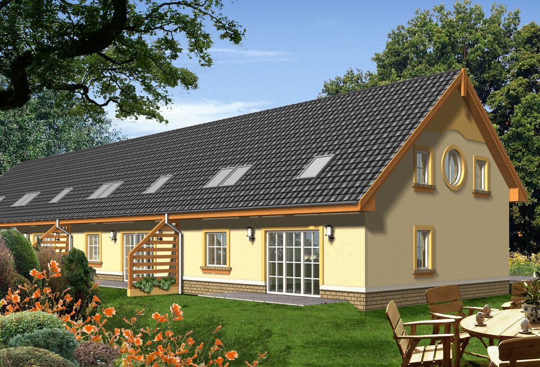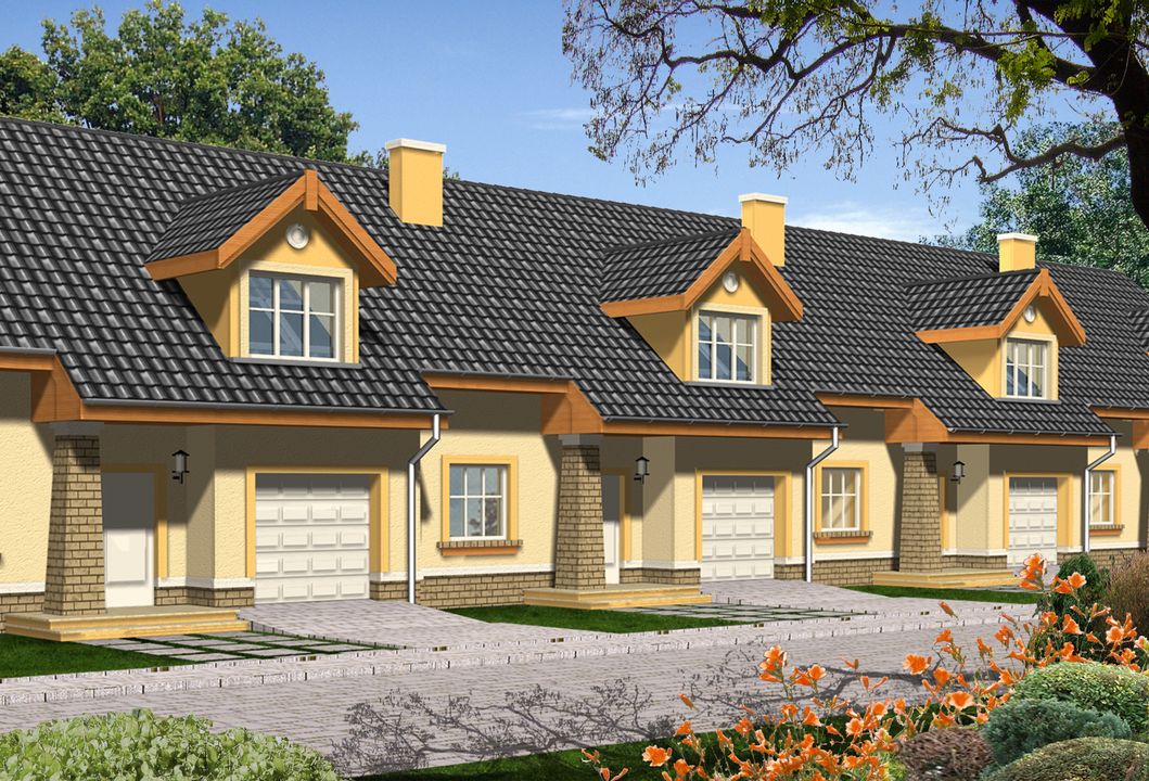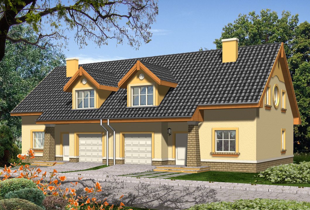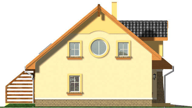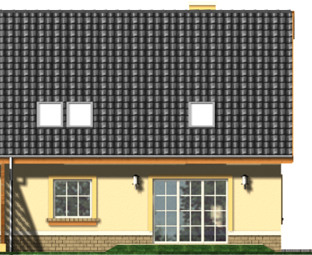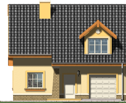 Graficzne opracowanie rzutów poglądowych widocznych na karcie projektu zostało wykonane przez Extradom.pl. Prezentowane przez Extradom.pl wizualizacje wykonane zostały przez autora projektu i należy poczytywać je jedynie za przykład i propozycję wykończenia, wizję architektoniczną autora projektu. Ostateczne wykończenie budynku może nastąpić na wiele sposobów. Szczegółowe rozwiązania zastosowane w oferowanej dokumentacji - w tym również ilość, lokalizacje i wygląd okien, drzwi, kominów - mogą w niewielkim stopniu różnić się od prezentowanej wizualizacji budynku.