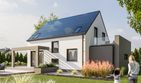 Wersja technologiczna: murowana - beton komórkowy. Izolacja termiczna ścian zewnętrznych: styropian TERMONIUM FASADA firmy TERMO ORGANIKA. Strop: żelbetowy monolityczny. Typ schodów: płytowe żelbetowe. Konstrukcja dachu: drewniana krokwiowa. Pokrycie dachowe: dach solarny w systemie MyRoof z panelami PV 370W FULLBLACK, część nieaktywna poszycia dachu wykonana z kompozytu aluminiowego firmy mdm NT. Typ ogrzewania: pompa ciepła. Wentylacja: mechaniczna. Ściany zewnętrzne: 24 cm beton komórkowy Solbet Optimal. Ściany wewnętrzne: 24 cm beton komórkowy Solbet Optimal. Ściany wewnętrzne działowe: 12 cm beton komórkowy Solbet Optimal. Wentylacja: mechaniczna Heatpex Aria.