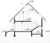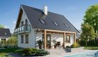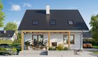 Graficzne opracowanie rzutów poglądowych widocznych na karcie projektu zostało wykonane przez Extradom.pl. Prezentowane przez Extradom.pl wizualizacje wykonane zostały przez autora projektu i należy poczytywać je jedynie za przykład i propozycję wykończenia, wizję architektoniczną autora projektu. Ostateczne wykończenie budynku może nastąpić na wiele sposobów. Szczegółowe rozwiązania zastosowane w oferowanej dokumentacji - w tym również ilość, lokalizacje i wygląd okien, drzwi, kominów - mogą w niewielkim stopniu różnić się od prezentowanej wizualizacji budynku.