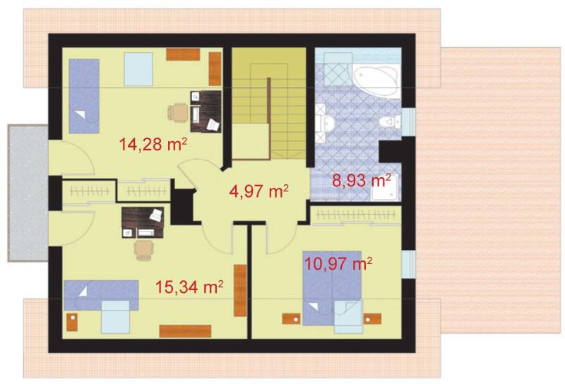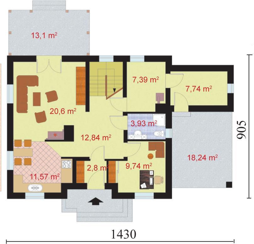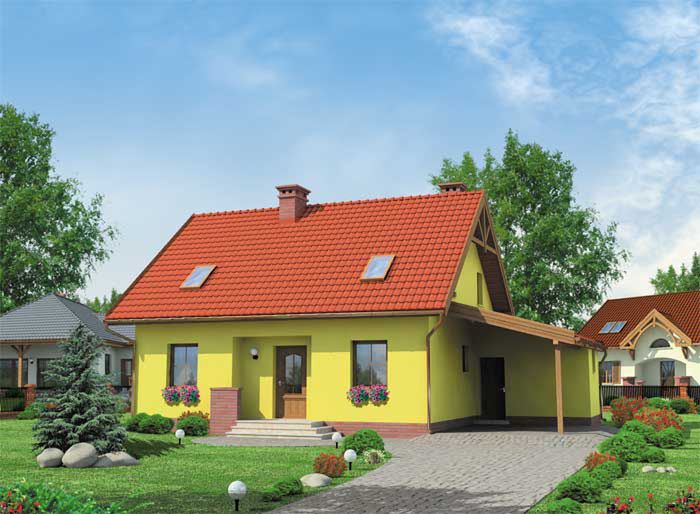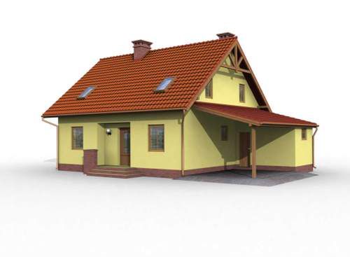 Graficzne opracowanie rzutów poglądowych widocznych na karcie projektu zostało wykonane przez Extradom.pl. Prezentowane przez Extradom.pl wizualizacje wykonane zostały przez autora projektu i należy poczytywać je jedynie za przykład i propozycję wykończenia, wizję architektoniczną autora projektu. Ostateczne wykończenie budynku może nastąpić na wiele sposobów. Szczegółowe rozwiązania zastosowane w oferowanej dokumentacji - w tym również ilość, lokalizacje i wygląd okien, drzwi, kominów - mogą w niewielkim stopniu różnić się od prezentowanej wizualizacji budynku.