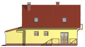 Technologia tradycyjna. Ściany zewnętrzne murowane grubości 30 cm + 10 cm styropian. Ściany wewnętrzne (nośne) gr. 25 cm i działowe gr. 12 cm. Wszystkie ściany wykonane z pustaków ceramicznych "POROTHERM". Strop monolityczny żelbetowy gr. 17 cm nad pokojem dziennym i kuchnią oraz gr. 14 cm nad pozostała częścią. Konstrukcja więźby dachowej drewniana w układzie krokwiowo-jętkowym. Pokrycie dachówka ceramiczna. Projekt posiada kominek. Instalacja grzewcza: kocioł gazowy w kotłowni.