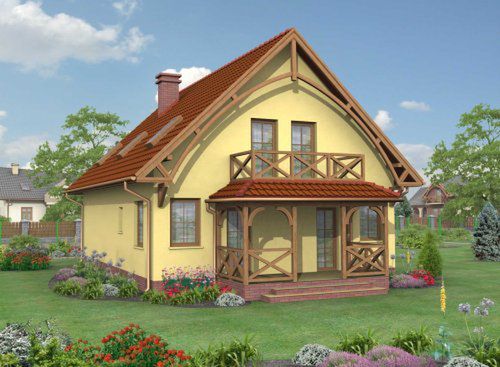 Technologia tradycyjna : - powierzchnia zabudowy (bez werandy i schodów zewn.) - 112,46m2- powierzchnia werandy i schodów zewnętrznych -18,04m2 - powierzchnia użytkowa - parteru - 87,56m2 - werandy - 9,63m2 - poddasza - 73,52m2- powierzchnia całkowita - 250,24m2 - kubatura części przekrytej i zamkniętej ze wszystkich stron - 774,60m3 - kubatura części przekrytej i niezamkniętej ze wszystkich stron - 43,11m3 - kubatura części nieprzekrytej i osłoniętej (balkon) - 5,40m3 - ściany zewnętrzne murowane grubości 30 cm + 12 cm styropian - ściany wewnętrzne (nośne) gr. 25 cm i działowe gr. 12 cm - wszystkie ściany wykonane z pustaków ceramicznych "POROTHERM" - strop gęstożebrowy "POROTHERM" o gr. 23 cm - konstrukcja więźby dachowej drewniana: budynek w układzie krokwiowo-jętkowym, nad wejściem konstrukcja krokwiowa, nad werandą konstrukcja belkowo-krokwiowa. - pokrycie dachu dachówka ceramiczna - projekt posiada kominek - instalacja grzewcza: kocioł gazowy w kotłowni