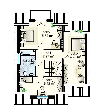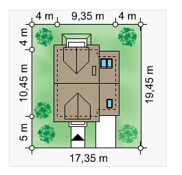 Graficzne opracowanie rzutów poglądowych widocznych na karcie projektu zostało wykonane przez Extradom.pl. Prezentowane przez Extradom.pl wizualizacje wykonane zostały przez autora projektu i należy poczytywać je jedynie za przykład i propozycję wykończenia, wizję architektoniczną autora projektu. Ostateczne wykończenie budynku może nastąpić na wiele sposobów. Szczegółowe rozwiązania zastosowane w oferowanej dokumentacji - w tym również ilość, lokalizacje i wygląd okien, drzwi, kominów - mogą w niewielkim stopniu różnić się od prezentowanej wizualizacji budynku.