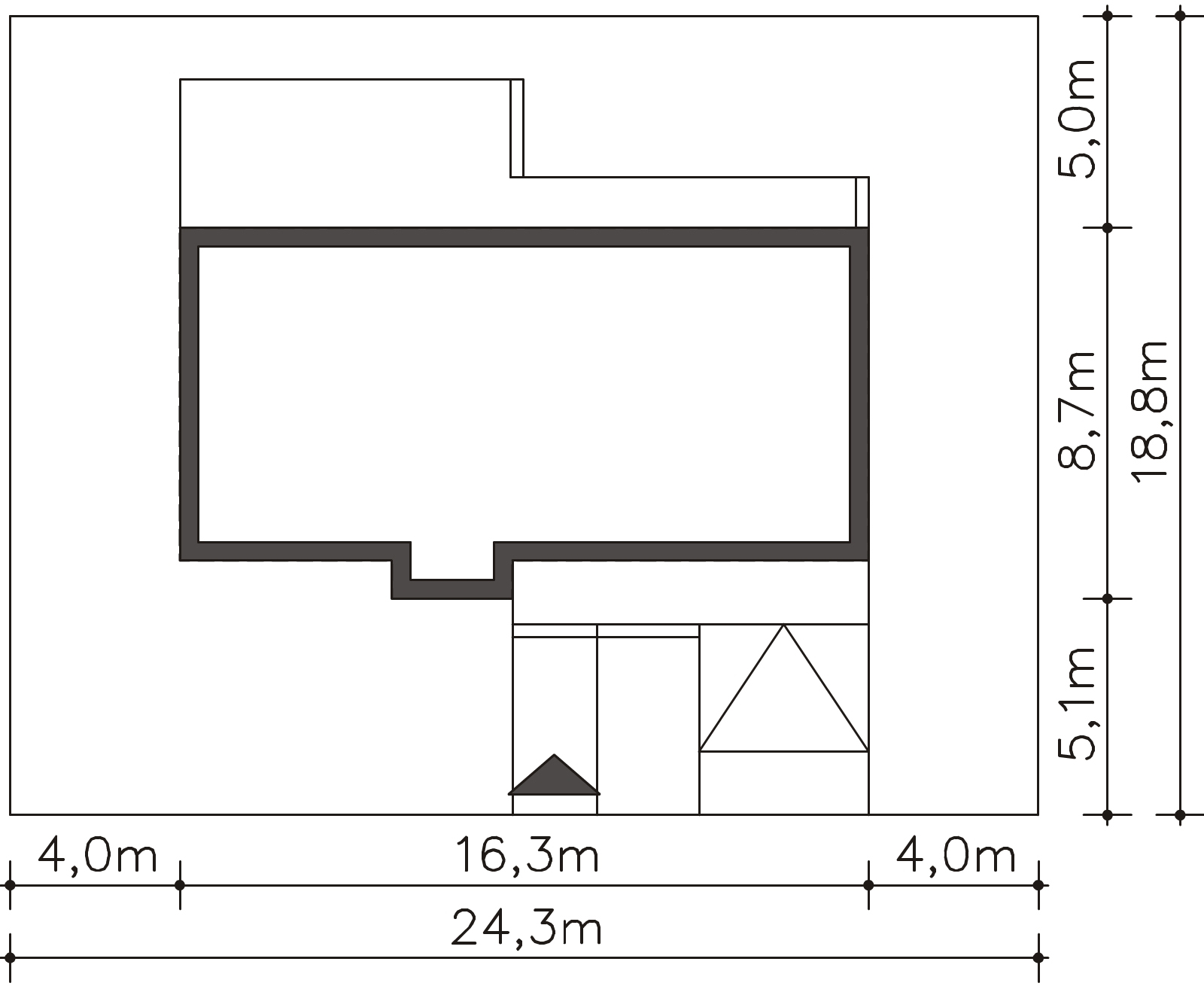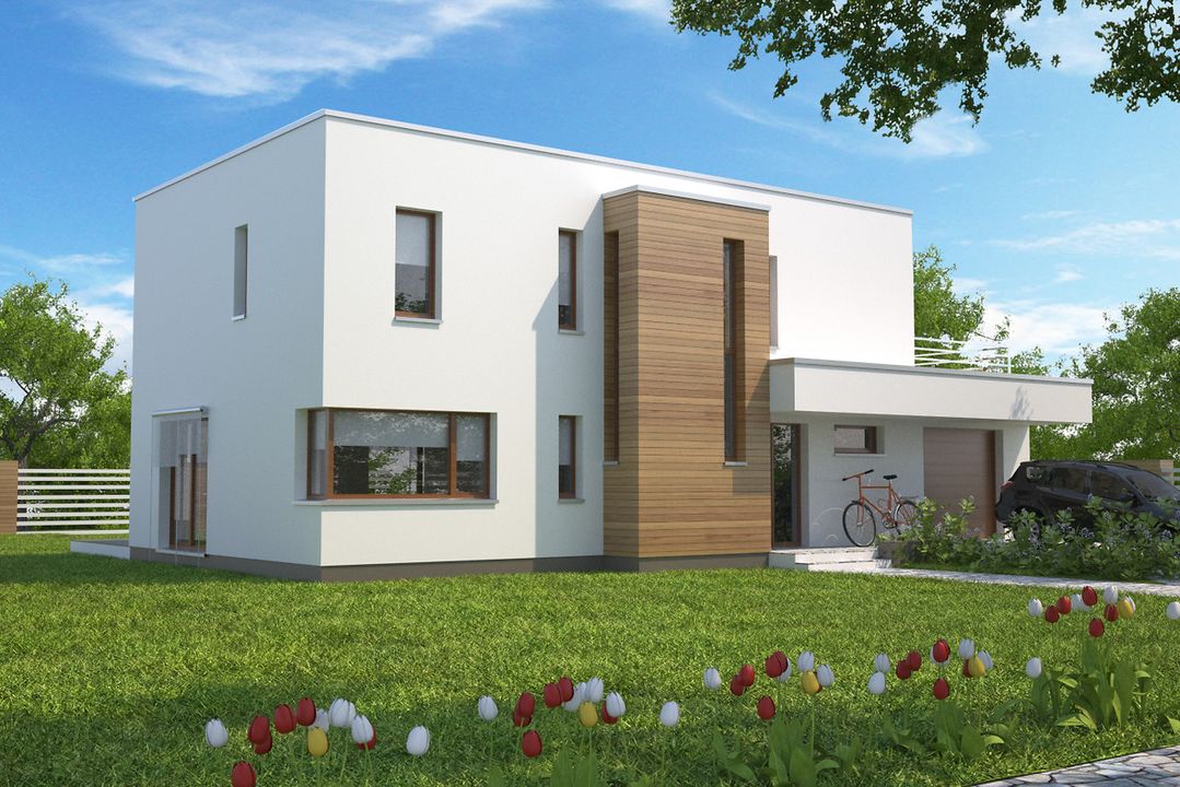 Fundamenty - płyta fundamentowa. Ściany zewnętrzne - Bloczek silikatowy 18 cm + styropian 20 cm. Strop - gęstożebrowy. Dach - stropodach żelbetowy. Ogrzewanie - c.o. grzejnikowe + c.w.u. - kocioł gazowy. Wentylacja - rekuperacja.