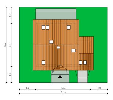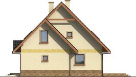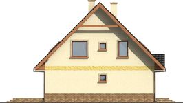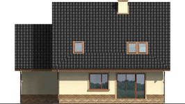 Graficzne opracowanie rzutów poglądowych widocznych na karcie projektu zostało wykonane przez Extradom.pl. Prezentowane przez Extradom.pl wizualizacje wykonane zostały przez autora projektu i należy poczytywać je jedynie za przykład i propozycję wykończenia, wizję architektoniczną autora projektu. Ostateczne wykończenie budynku może nastąpić na wiele sposobów. Szczegółowe rozwiązania zastosowane w oferowanej dokumentacji - w tym również ilość, lokalizacje i wygląd okien, drzwi, kominów - mogą w niewielkim stopniu różnić się od prezentowanej wizualizacji budynku.