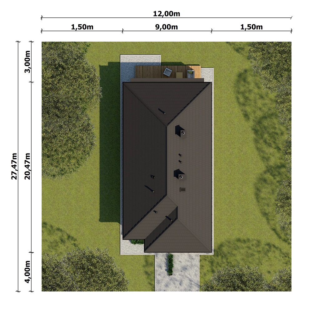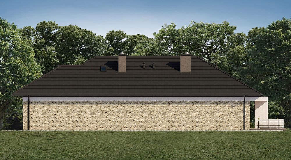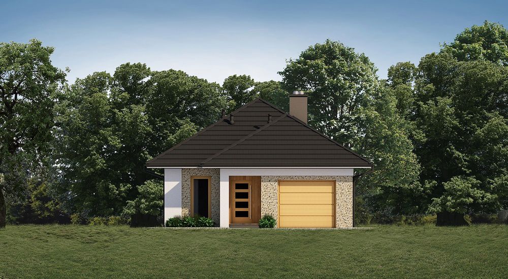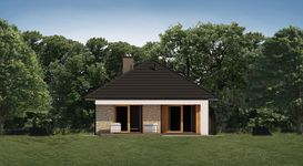 Graficzne opracowanie rzutów poglądowych widocznych na karcie projektu zostało wykonane przez Extradom.pl. Prezentowane przez Extradom.pl wizualizacje wykonane zostały przez autora projektu i należy poczytywać je jedynie za przykład i propozycję wykończenia, wizję architektoniczną autora projektu. Ostateczne wykończenie budynku może nastąpić na wiele sposobów. Szczegółowe rozwiązania zastosowane w oferowanej dokumentacji - w tym również ilość, lokalizacje i wygląd okien, drzwi, kominów - mogą w niewielkim stopniu różnić się od prezentowanej wizualizacji budynku.