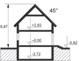 Dach: blachodachówka, kąt nachylenia 43°. Stropy: żelbetowe, wylewane. Ściany: 3-warstwowe - pustak ceramiczny. Ogrzewanie: gazowe, olejowe.