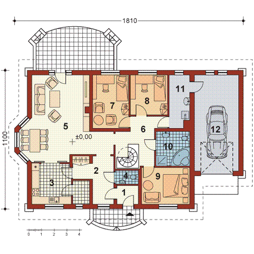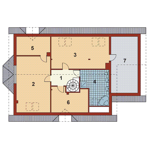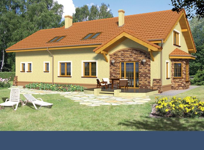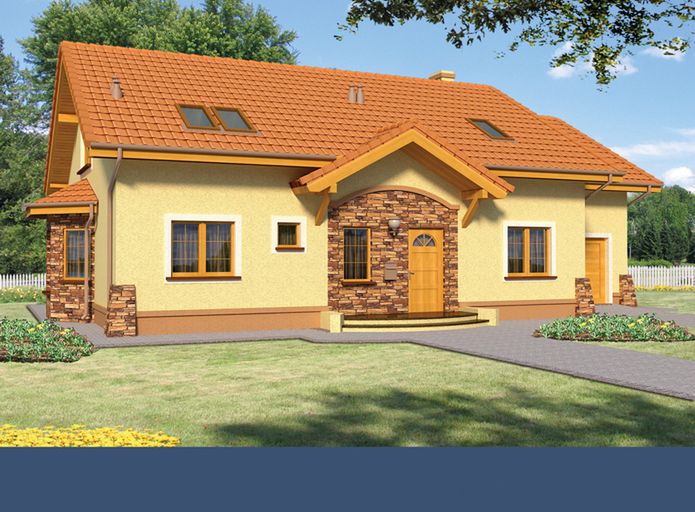 Graficzne opracowanie rzutów poglądowych widocznych na karcie projektu zostało wykonane przez Extradom.pl. Prezentowane przez Extradom.pl wizualizacje wykonane zostały przez autora projektu i należy poczytywać je jedynie za przykład i propozycję wykończenia, wizję architektoniczną autora projektu. Ostateczne wykończenie budynku może nastąpić na wiele sposobów. Szczegółowe rozwiązania zastosowane w oferowanej dokumentacji - w tym również ilość, lokalizacje i wygląd okien, drzwi, kominów - mogą w niewielkim stopniu różnić się od prezentowanej wizualizacji budynku.
