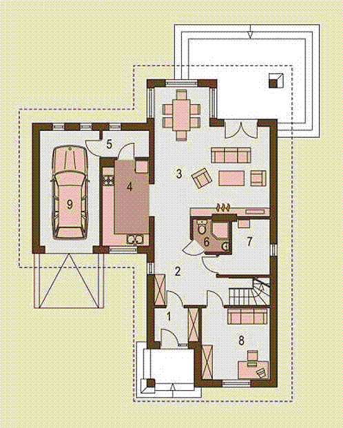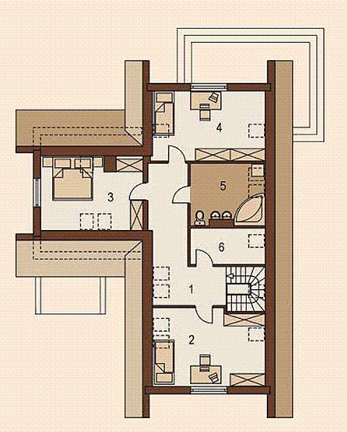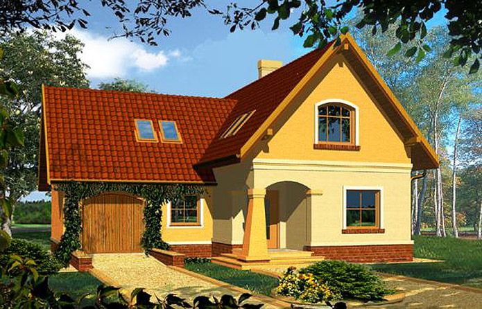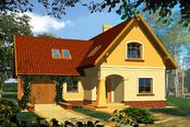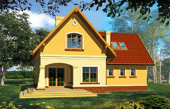Graficzne opracowanie rzutów poglądowych widocznych na karcie projektu zostało wykonane przez Extradom.pl. Prezentowane przez Extradom.pl wizualizacje wykonane zostały przez autora projektu i należy poczytywać je jedynie za przykład i propozycję wykończenia, wizję architektoniczną autora projektu. Ostateczne wykończenie budynku może nastąpić na wiele sposobów. Szczegółowe rozwiązania zastosowane w oferowanej dokumentacji - w tym również ilość, lokalizacje i wygląd okien, drzwi, kominów - mogą w niewielkim stopniu różnić się od prezentowanej wizualizacji budynku.