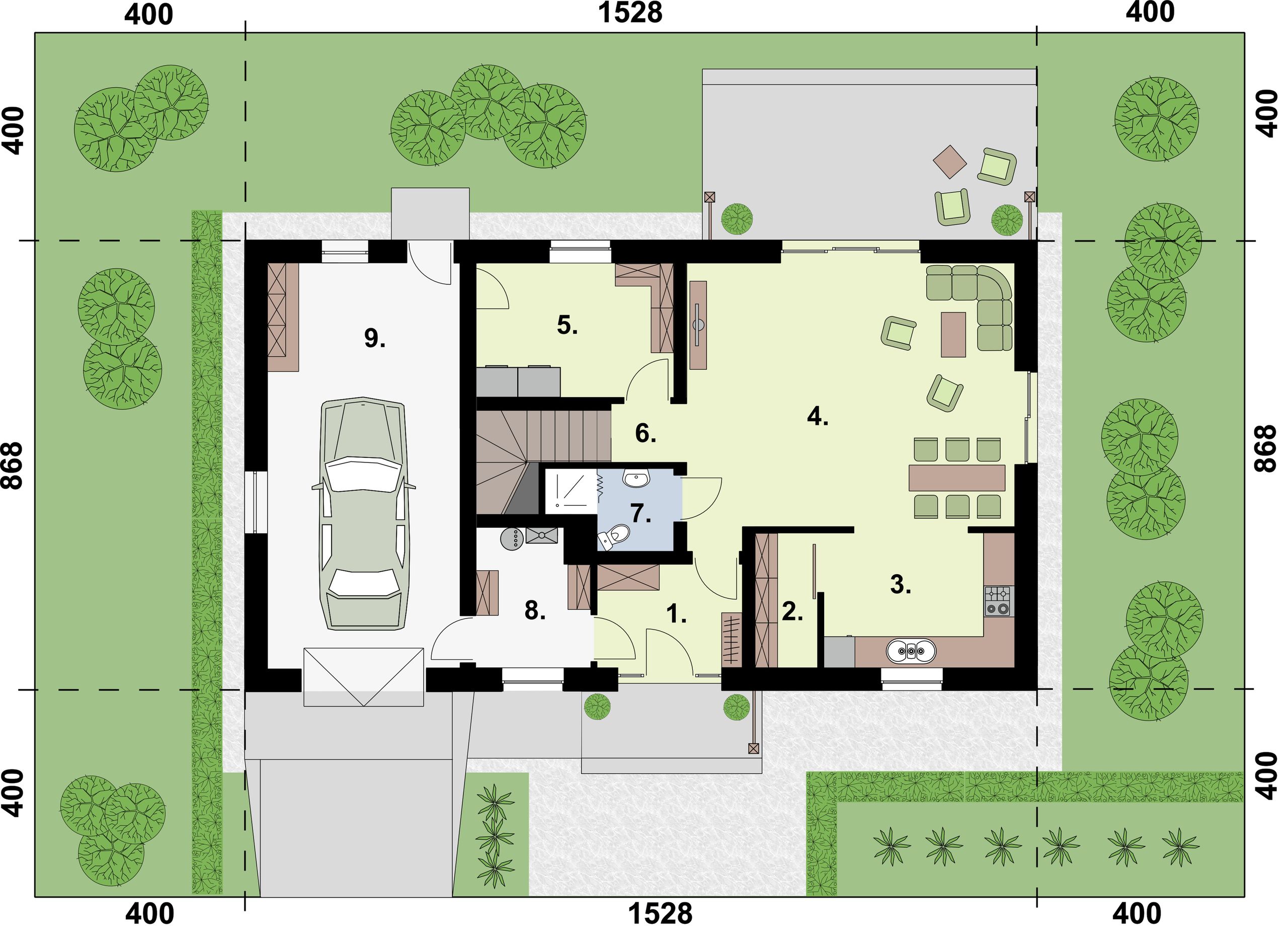 Projekt nie spełnia norm związanych z Eurokodami. Zapytaj Doradcę o dostępność projektu w wersji dostosowanej do Eurokodów. Projekt stanowi aktualną i pełną dokumentację zawierającą część architektoniczno - budowlaną, konstrukcyjną wykonawczą, instalacji wewnętrznych, elektrycznych i teletechnicznych, charakterystykę energetyczną oraz uprawnienia projektantów. Dokumentacja zabezpieczona jest specjalną plombą, której usunięcie uniemożliwi jej zwrot. Zapraszamy do zamówienia przed zakupem rysunków szczegółowych projektu oraz analizy posiadanej działki w celu upewnienia się, że wybrany projekt domu idealnie na nią pasuje. Wymiana rozplombowanego projektu podlega opłacie manipulacyjnej w wysokości 100 zł. O szczegóły dopytaj w Centrum Obsługi Klienta.
