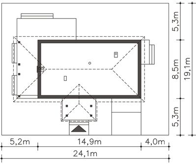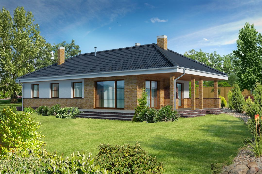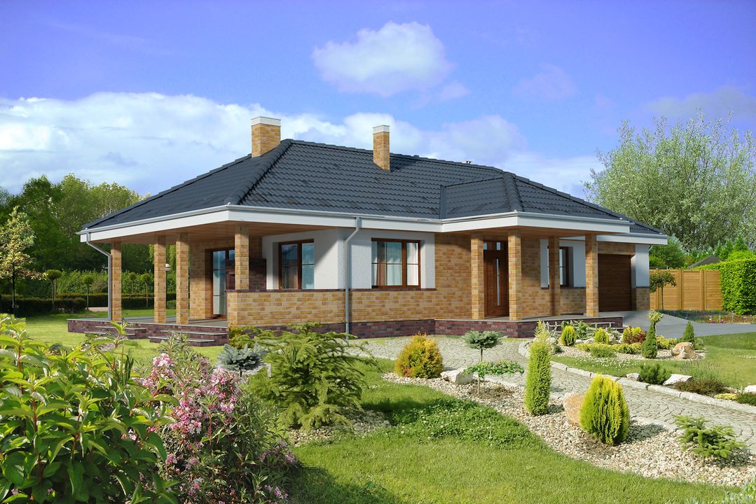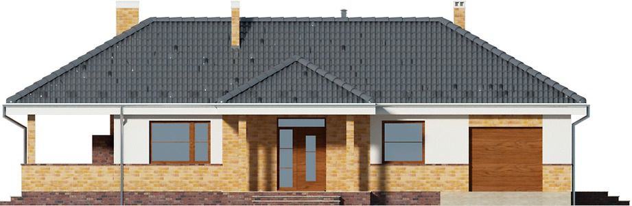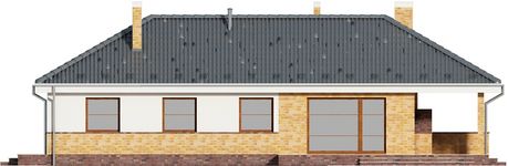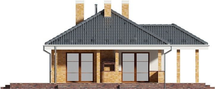 Graficzne opracowanie rzutów poglądowych widocznych na karcie projektu zostało wykonane przez Extradom.pl. Prezentowane przez Extradom.pl wizualizacje wykonane zostały przez autora projektu i należy poczytywać je jedynie za przykład i propozycję wykończenia, wizję architektoniczną autora projektu. Ostateczne wykończenie budynku może nastąpić na wiele sposobów. Szczegółowe rozwiązania zastosowane w oferowanej dokumentacji - w tym również ilość, lokalizacje i wygląd okien, drzwi, kominów - mogą w niewielkim stopniu różnić się od prezentowanej wizualizacji budynku.