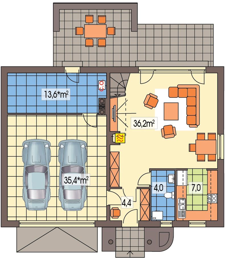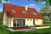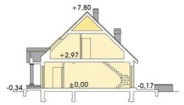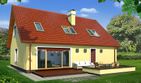 Graficzne opracowanie rzutów poglądowych widocznych na karcie projektu zostało wykonane przez Extradom.pl. Prezentowane przez Extradom.pl wizualizacje wykonane zostały przez autora projektu i należy poczytywać je jedynie za przykład i propozycję wykończenia, wizję architektoniczną autora projektu. Ostateczne wykończenie budynku może nastąpić na wiele sposobów. Szczegółowe rozwiązania zastosowane w oferowanej dokumentacji - w tym również ilość, lokalizacje i wygląd okien, drzwi, kominów - mogą w niewielkim stopniu różnić się od prezentowanej wizualizacji budynku.