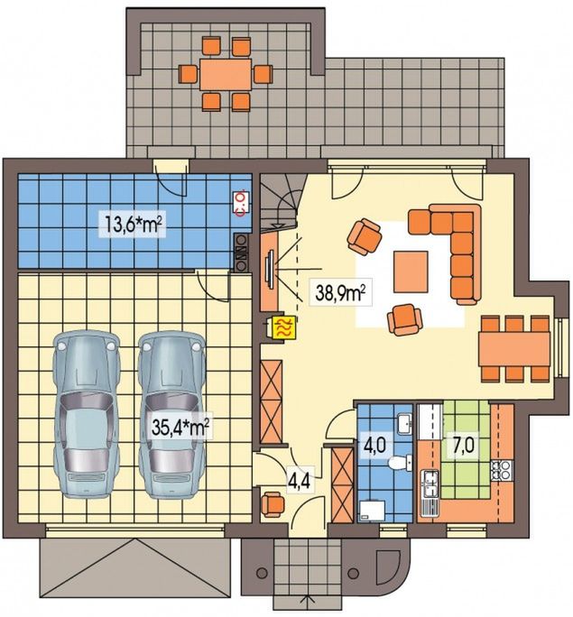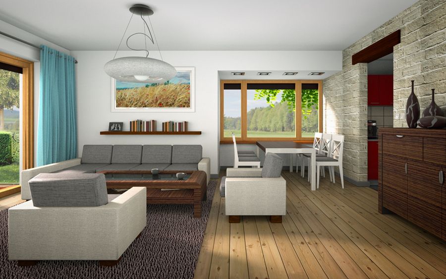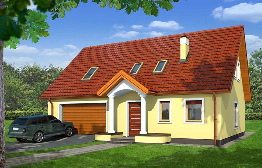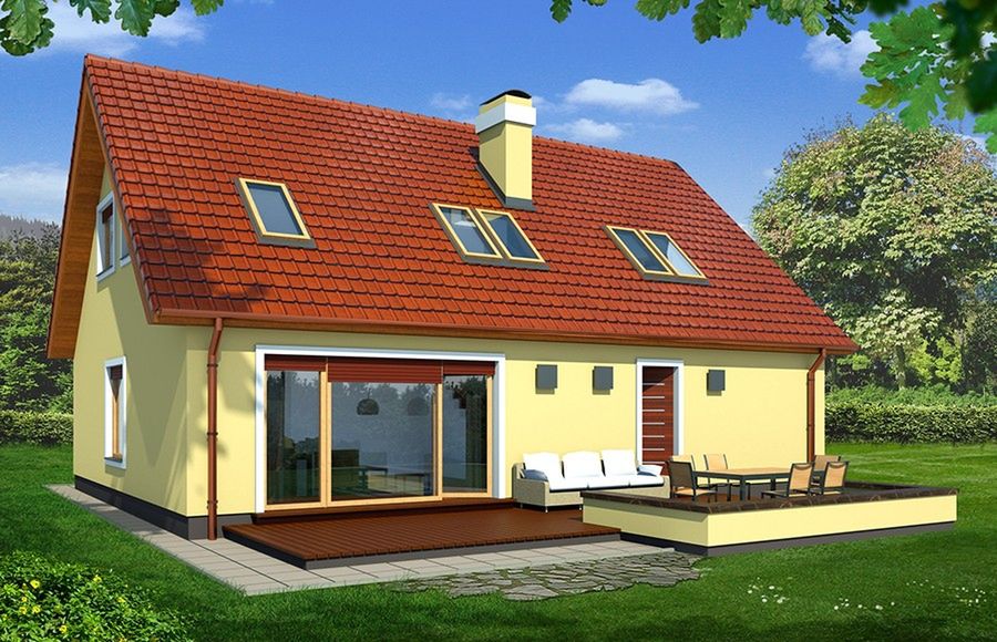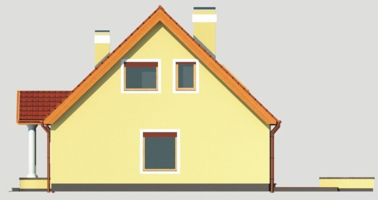 Graficzne opracowanie rzutów poglądowych widocznych na karcie projektu zostało wykonane przez Extradom.pl. Prezentowane przez Extradom.pl wizualizacje wykonane zostały przez autora projektu i należy poczytywać je jedynie za przykład i propozycję wykończenia, wizję architektoniczną autora projektu. Ostateczne wykończenie budynku może nastąpić na wiele sposobów. Szczegółowe rozwiązania zastosowane w oferowanej dokumentacji - w tym również ilość, lokalizacje i wygląd okien, drzwi, kominów - mogą w niewielkim stopniu różnić się od prezentowanej wizualizacji budynku.