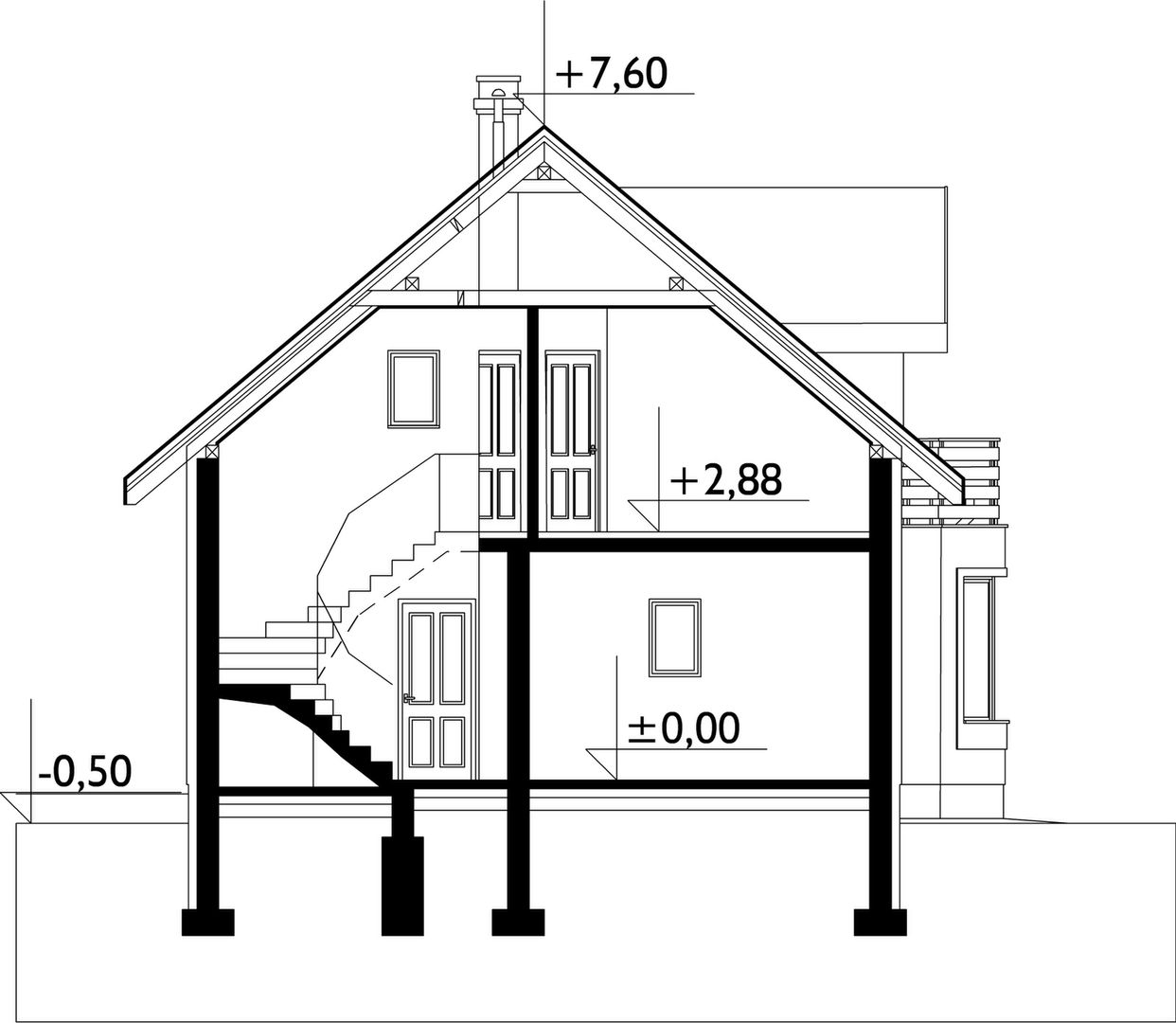 Technologia i konstrukcja: murowana – ceramika. Ściany zewnętrzne: cegła kratówka + styropian. Ściany wewnętrzne: cegła kratówka. Strop: żelbetowy. Konstrukcja dachu: drewniana, jętkowa. Rodzaj schodów: żelbetowe. Typ ogrzewania: kocioł na gaz. Aneks na paliwo stałe: dostępny (zapytaj o cenę). Pokrycie dachu: dachówka ceramiczna lub blacha dachówkowa. Elewacja: tynk cienkowarstwowy, podmurówka - płytki ceramiczne.